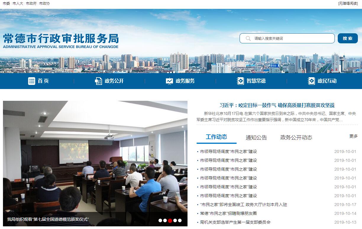 | 网站简介: 常德市行政审批服务局主要职责:(一)贯彻落实中央、省、市关于政务服务、数据管理工作的方针政策和决策部署,拟订相关发展规划、年度计划和措施办法并组织实施。(二)推进、指导、协调、监督全市政务公开(政府信息公开、办事公开)和政务服务体系建设,组织集中开展政务服务。(三)牵头负责全市“放管服”改革工作;指导、协调、推进全市行政审批制度改革工作。(四)统筹协调、规划指导、监督评估全市电子政务工作;统筹推进、监督协调全市“互联网+政务服务”工作。(五)负责全市政府网站、政务新媒体发展的统筹规划、监督考核,指导市政府网站建设。(六)负责智慧常德建设的组织、指导、协调和管理。(七)负责市本级财政性资金建设的信息化工程的统筹规划、立项审批、技术评审、施工监管、竣工验收和绩效评估。(八)统筹全市数据资源体系的建设、管理工作,组织、协调、推进数据资源共享与开放。(九)统筹推进全市电子政务和智慧城市基础设施、信息系统、数据资源的安全保障体系建设。(十)完成市委、市政府交办的其他事项。 |