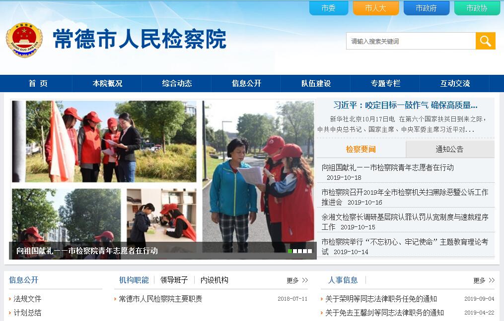 常德市人民检察院是本市的法律监督机关。领导本市各地人民检察院依法履行法律监督职能,接受湖南省人民检察院领导,对常德市人民代表大会及其常务委员会负责并报告工作。其主要职责是:1、领导本市各地人民检察院的工作;按照市委和湖南省人民检察院确定的工作方针,研究、决定和部署本市检察工作任务,并指导、督促和检查检察工作任务的执行。2、对本市重大刑事犯罪案件依法审查批捕,对本市公安、国家安全机关的立案和侦查活动进行法律监督;领导本市各地人民检察院对刑事犯罪案件的侦查监督工作。3、对本市重大刑事犯罪案件依法审查起诉,对本市人民法院的刑事审判活动进行法律监督;领导本市各地人民检察院的审查起诉工作和刑事审判监督工作。4、依法对本市刑罚执行活动进行法律监督;领导本市各地人民检察院的监所检察工作。5、依法对本市民事和行政案件审判活动进行法律监督;领导本市各地人民检察院开展民事和行政案件审判诉讼活动的法律监督工作。6、对本市各地人民法院作出的已经发生法律效力但确有错误的判决和裁定,依法向市中级人民法院提出抗诉。7、受理公民控告、申诉和检举,办理刑事赔偿事项。8、依法对重大疑难案件的物证进行检验、鉴定和审核,指导本市各地人民检察院的检察技术工作。9、负责对本市各地人民检察院执行政策和法律的指导;对于检察工作中遇到的应用法律问题,向有关部门提出司法解释和立法的建议。10、规划、指导本市各地人民检察院的财务、装备等后勤保障工作。11、负责本市各地人民检察院的思想政治工作、监察工作、干部教育培训工作和检察官队伍、司法警察队伍建设。12、承办应由市人民检察院负责的其他事项。