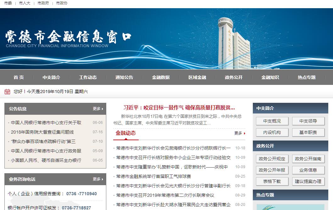| 网站名称: | 中国人民银行常德市中心支行 | ||