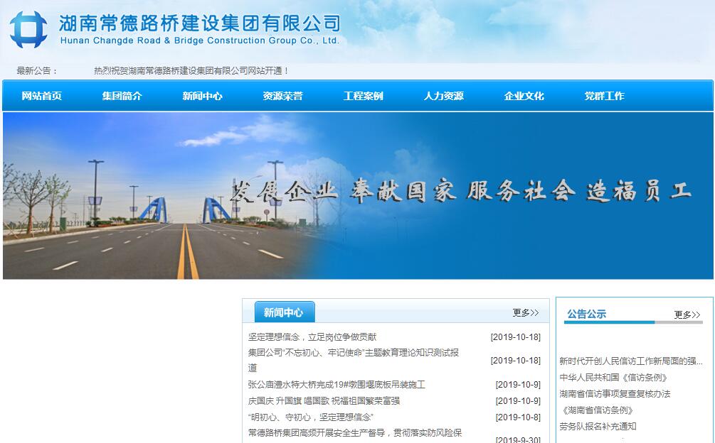 湖南常德路桥建设集团有限公司(简称“湖南常德路桥集团”)是2012年3月经常德市人民政府批准,以具有40多年经营发展历史的常德路桥建设有限公司为基础组建的国有独资公司(中I型企业),受常德市国资委监管。资质等级:集团公司是住建部批准的壹级公路工程施工企业,具有公路工程施工总承包壹级、公路路面工程专业承包壹级、公路路基工程专业承包壹级、公路交通工程(公路安全设施)专业承包壹级、桥梁工程专业承包贰级、公路工程试验检测综合乙级、公路桥梁设计丙级、市政公用工程施工总承包叁级、建筑工程施工总承包叁级、地基基础工程专业承包叁级等资质。经营范围:集团公司经营范围涵盖道路桥梁工程建设、交通基础设施的设计与交通科技产品开发、市政工程施工、沥青储运加工和施工、房地产开发、房屋建筑工程施工及其相关投融资等领域。公司规模:集团公司注册资本金5.01亿元。现有员工227人,其中:高级职称37人,中级职称89人;一级建造师15人,二级建造师14人。各类齐全的专业施工设备479台套,年施工能力逾10亿元。拥有全资子公司4家,即:常德大德公路勘察设计有限公司、常德海赛沥青经营有限公司、常德厚德交通工程有限公司、湖南俊德房地产开发有限公司。工程业绩:40多年来,公司积极参与省内外各类公路桥梁工程项目的建设,曾参与湖南省最长的公路大桥—汉寿仓儿总大桥以及常德柳叶湖大桥和澧县张家滩大桥、鄂尔多斯沿黄一级公路大桥等二十余座大型桥梁的施工建设。承建了湘潭至邵阳高速公路22A标、临湘至长沙高速公路02B标、湖南省常张高速公路23标、湖南省醴潭高速公路6标、湖南省常吉高速公路8标、江西景婺黄(常)高速公路A6标、湖南省道贺高速公路A1标、湖南省通平高速公路4标、龙山至永顺高速公路3标和17标、益阳绕城高速TJ2标等高速公路项目、东常高速公路路面工程2标、路基桥梁工程4标、12标。参与了通平高速、垄茶高速、张花高速等高速公路的交通安全工程建设。历年来,累计完成公路建设里程近6000公里,积累了丰富的施工经验,工程质量屡创佳绩。公司参与承建的湖南省常德至张家界高速公路更是荣获了中国公路建设行业协会颁发的“2009年度公路交通优质工程一等奖”。集团公司组建后,不断拓展工程业务范围,先后参与了常德市城区“三改四化”和北部新城等市政项目建设,承建了常德市脱贫攻坚自然村通水泥路工程,为实施党中央和省委“全面建设小康社会,实施交通精准扶贫”战略、落实市委“产业立市,开放强市”战略,体现国企担当和作为。展望未来:集团公司将按照常德市委、市政府的统一决策和部署,在常德市国资委的正确领导下,通过内挖潜力,外求发展,主动作为,不断拓宽经营范围、逐渐扩大经营规模,稳步提升企业效益,将集团公司打造成为全市、全省有知名度和影响力的国有大型企业集团。集团公司愿与社会各界在更为广泛的领域,开展更为深入、全面的合作,共同创造美好未来。