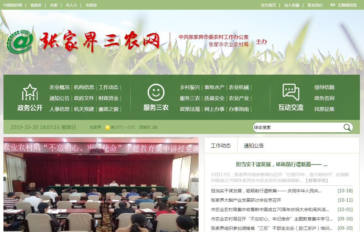 张家界市农业农村局主要职责:(一)负责农业、农村工作的协调和综合工作,组织研究农业、农村发展和改革中的问题,提出农业、农村发展和改革的政策建议,指导农村发展和改革工作。(二)会同有关部门研究提出城乡经济社会发展一体化体制机制改革的建议,指导协调县域经济发展和新农村建设,研究提出县域经济发展和新农村建设的政策与规划建议,参与农村小城镇规划和建设的有关工作,参与农村小城镇规划和建设的有关工作,参与农村社会事业发展工作。(三)贯彻执行种植业、畜牧业、渔业、农业机械化、农产品加工业、农垦等农业各产业(以下简称农业)发展的方针政策,拟订农业发展的政策和规划并指导实施,参与涉农的财税、价格、金融保险、进出口等政策制定,推进农业依法行政。(四)研究提出稳定和完善农村经营管理体制的建议,指导农村土地承包、耕地使用权流转和承包纠纷仲裁管理,指导、监督减轻农民负担和村民筹资筹劳管理工作,检查监督惠农政策的落实,指导村级集体经济发展、农村集体经济组织建设和资产财务管理,拟订农业产业化经营的发展规划与政策并组织实施,指导、扶持农业社会化服务体系、农村合作经济组织、农民专业合作社和农产品行业协会的建设与发展。(五)指导粮食等主要农产品生产,组织落实促进粮食等主要农产品生产发展的相关政策措施,引导农业产业结构调整和产品品质改善,会同有关部门指导农业标准化、规模化生产;提出农业固定资产投资规模和方向、市级财政性资金安排的建议,按权限审批、核准规划和计划内固定资产投资项目;编报部门预算并组织执行,提出扶持农业农村发展的财政政策和项目建议,经批准后与财政部门共同制订实施方案并指导实施;拟订农业开发规划并监督实施;配合财政部门组织实施农业综合开发项目。(六)促进农业产前、产中、产后一体化发展,组织拟订促进农产品加工业发展政策、规划并组织实施,提出农业产业保护政策建议,指导农产品加工业结构调整、技术创新和服务体系建设;提出促进大宗农产品流通的政策建议,研究制定大宗农产品市场体系建设与发展规划;培育、保护和发展农产品品牌;组织协调“菜篮子”工程。(七)承担提升农产品质量安全水平的责任,依法开展农产品质量安全风险评估,发展有关农产品质量安全状况信息,负责农产品质量安全监测;贯彻执行农业转基因生物安全评价标准和技术规范,负责农业转基因生物安全监督管理和农业植物新品种保护;会同有关部门贯彻执行农产品质量安全国家标准,参与制定农产品质量安全地方标准并指导实施;指导农业检验检测体系建设和工作考核;依法实施符合安全标准的农产品认证和监督管理;组织农产品质量安全的监督管理;负责畜禽屠宰的监督管理。(八)组织、协调农业生产资料市场体系建设,依法开展农作物种子(种苗)、草种、种畜禽、农药、兽药、饲料、饲料添加剂、食用菌菌种的许可及监督管理;贯彻执行兽药质量、兽药残留限量和残留检测方法国家标准;依法负责渔船、渔港、渔机、网具有监督管理,指导渔业安全生产;会同有关部门贯彻执行农业生产资料标准;开展兽医医疗器材和有关肥料的监督管理;指导农业机构化发展和农机安全监理,组织实施农机惠农政策。(九)负责农作物重大病虫害防治,贯彻执行动植物防疫检疫法律法规和政策,会同有关部门制定地方性动植物防疫政策建议并指导实施;指导动植物防疫和检疫体系建设;组织、监督对市内动植物的防疫检疫工作,发布疫情并组织扑灭;组织植物检疫性有害生物普查;承担境外引进农作物种子(种苗)检疫审批工作;配合有关部门制定血吸虫病防治工作计划并组织实施;组织兽医医政、兽药药政药检工作;负责执行兽医的管理。(十)承担农业防灾减灾的的责任。监测、发布农业灾情,组织种子、化肥等救灾物资储备和调拨,提出生产救灾资金安排建议,指导紧急救灾和灾后生产恢复。(十一)管理农业和农村经济信息,监测分析农业、农村经济运行,开展相关农业统计工作;采集、发布农业和农村经济信息,负责农业信息体系建议,指导农业信息服务。(十二)制定农业科研、农技推广的规划、计划和有关并指导实施;会同有关部门组织农业科技创新体系和农业技术体系建设,会同有关部门实施科教兴农战略,按分工组织实施农业科研重大专项;组织实施农业领域的高新技术和应用技术研究、农业科技成果转化和技术推广;负责农业科技成果管理,组织引进境外农业先进技术,指导农技推广体系改革与建设。(十三)会同有关部门拟订农业农村人才队伍建设规划并组织实施,指导协调农民教育培训,指导农业教育和农业职业技能开发工作,参与实施农村实用人才培训工程,承担农村劳动力就地就近就业培训工作,会同有关主管部门依法实施农业农村人才专业技术资格和从业资格管理。(十四)组织农业资源区划工作,指导农用地、渔业水域、草原、宜农滩涂、宜农湿地以及农业生物物种资源的保护和管理,负责水生野生动植物保护工作;拟订耕地及基本农田质量保护与改良政策并指导实施,依法管理耕地质量,发展节水农业。(十五)制定并实施农业生态建设规划,指导农村可再生能源综合开发与利用,指导农业生物质产业发展和农业农村节能减排,承担指导农业面源污染治理有