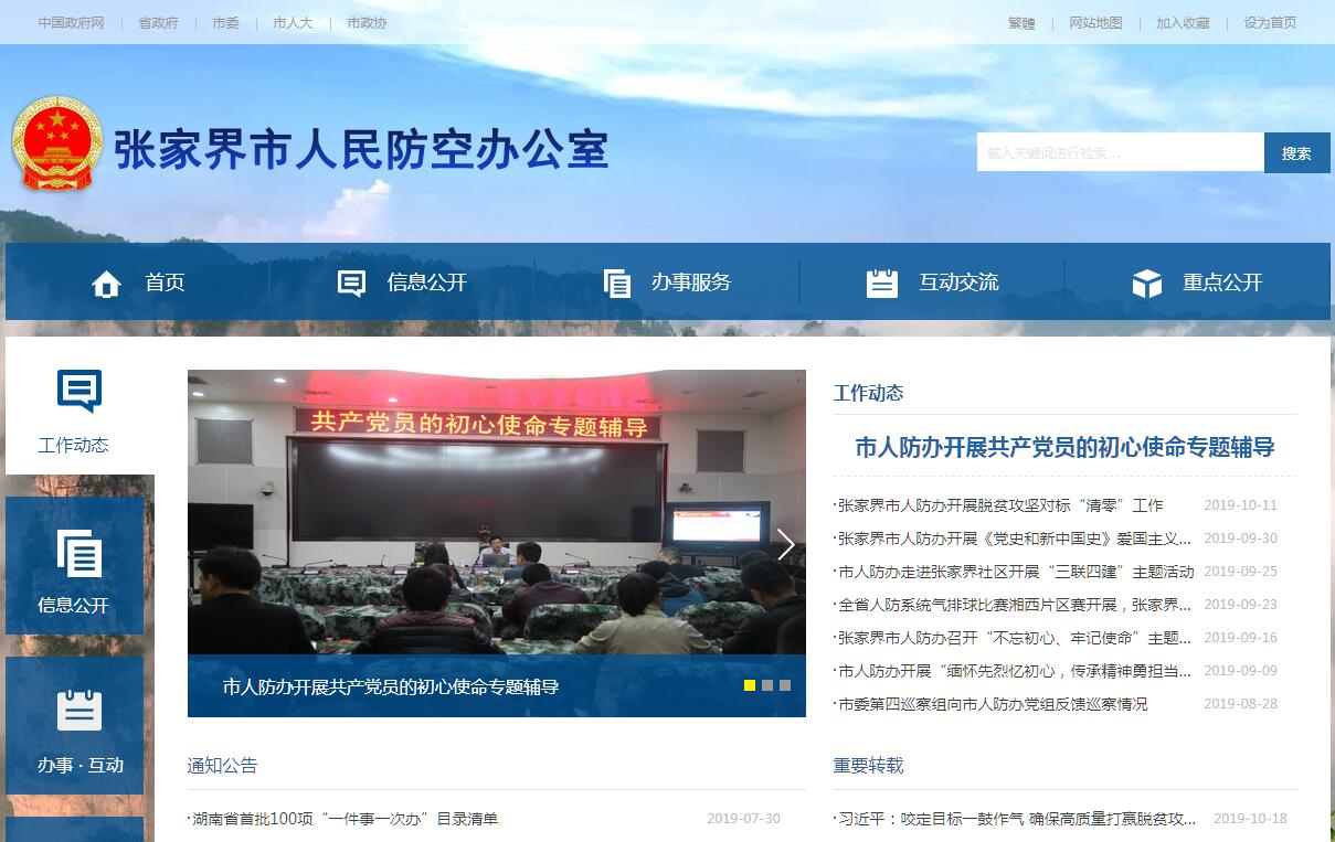 根据《中共张家界市委张家界市人民政府关于印发〈张家界市人民政府职能转变和机构改革方案的实施意见〉的通知》(张发〔2015〕3号)和《中共张家界市委张家界市人民政府关于张家界市人民政府机构设置的通知》(张发〔2015〕4号),设立张家界市人民防空办公室,既是张家界市国防动员委员会的常设办事机构,也是市政府人民防空工作主管部门。其主要职责是:(一)贯彻执行国家和省关于人民防空的方针、政策和法律、法规,编制全市人民防空建设中长期发展规划和年度工作计划,经批准后组织实施。(二)会同有关部门拟订(修订)城市防空袭方案;指导群众防空组织(人民防空专业队)建设和训练、防空防灾演习演练、疏散体系建设,协助军事部门指导城市防卫建设。战时组织开展城市人民防空袭斗争。(三)组织管理人民防空通信警报和信息化建设。对人民防空通信警报网和信息化建设实施计划、技术和质量管理,督促保障全市人民防空通信警报畅通。负责实施人民防空无线电管理。(四)会同有关部门拟订人民防空工程建设规划;审核城市地下空间开发利用的规划;负责城市地下空间开发利用兼顾人民防空要求的管理和监督检查;对城市和重要经济目标的人民防空建设进行监督检查;对人民防空工程(含结合民用建筑新建的防空地下室)建设实施计划、技术和质量管理;指导人民防空工程维护管理和平时开发利用工作。(五)会同有关部门组织开展人民防空宣传教育工作,普及人民防空知识和技能;组织指导人民防空干部教育培训和人民防空安全志愿者的招募培训及年度活动;协助地方党委管理县人民政府人民防空主管部门领导班子。(六)管理人民防空经费和资产,编制市本级人民防空经费预决算,并对使用情况实施监督检查。(七)推广、应用人民防空科学技术成果。(八)承担政府赋予的应急救援任务,利用人民防空指挥平台、人民防空设施和人民防空专业队伍为应急救援服务。(九)承办市人民政府、张家界军分区和市国防动员委员会交办的其他事项。