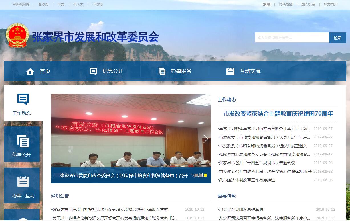 根据《中共张家界市委张家界市人民政府关于印发〈张家界市人民政府职能转变和机构改革方案的实施意见〉的通知》(张发〔2015〕3号)和《中共张家界市委张家界市人民政府关于张家界市人民政府机构设置的通知》(张发〔2014〕4号),设立张家界市发展和改革委员会,为市人民政府工作部门。其主要职责是:(一)拟订并组织实施国民经济和社会发展战略、中长期规划和年度计划,统筹协调相关总体规划、区域规划、主体功能区规划与专项规划;提出国民经济发展、价格总水平调控和优化重大经济结构的目标、政策,提出综合运用各种经济手段和政策的建议,受市人民政府委托向市人民代表大会提交国民经济和社会发展计划的报告。(二)研究宏观经济运行、总量平衡、经济安全和总体产业安全等重要问题并提出宏观调控政策建议,协调解决经济运行中的重大问题,调节国民经济运行。(三)汇总社会资金总体运行情况,参与制定财政、金融、土地政策并综合分析政策执行效果;会同有关部门完善宏观调控协调机制,统筹推进产业、创业等投资基金的发展和制度建设。(四)指导推进和综合协调经济体制改革,研究经济体制改革和对外开放重大问题;组织拟订综合性经济体制改革方案,协调有关专项改革方案,会同有关部门搞好专项改革之间的衔接;指导经济体制改革试点和改革试验区工作,协调推进“两型社会”建设工作。(五)拟订全社会固定资产投资总规模和投资结构的调控目标、政策及措施;统筹安排市级财政性建设资金和投资项目,编制下达政府投资年度计划;规划重大建设项目和生产力布局,按规定权限审批、核准、审核、备案跨地区、跨行业、跨领域和涉及综合平衡、重大布局的重大建设项目、外资项目、境外投资项目;研究提出利用外资和境外投资的战略、规划、总量平衡和结构优化的目标和政策;指导和监督国外贷款建设资金的使用,引导民间投资方向;牵头组织编制特重大自然灾害的灾后恢复重建规划,协调有关重大问题;研究提出市重点建设项目计划,组织开展重大建设项目稽察;负责政府投资项目代建制实施的指导、协调和监督管理;指导工程咨询业发展。(六)组织拟订综合性产业政策,负责协调第一、二、三产业发展的重大问题并衔接平衡相关发展规划和重大政策,负责综合交通运输体系规划与国民经济和社会发展规划的衔接平衡;协调农业和农村经济社会发展的重大问题;负责制定发展战略性新兴产业规划,研究提出新型工业化和产业集群发展的政策措施;会同有关部门研究拟订高新技术产业、服务业发展规划和重大政策,实施高新技术产业发展的宏观指导,协调解决重大技术装备推广应用等方面的重大问题。(七)贯彻落实西部开发、中部崛起、湘西地区以及长江经济带开发建设的政策措施;组织编制主体功能区规划、区域规划并协调实施;统筹促进武陵山片区及老少边穷地区加快发展的战略、规划和重大政策落实,拟订并组织实施以工代赈规划和计划;参与研究拟订城镇化发展战略和重大政策措施;制定开发园区发展规划和政策;统筹协调区域合作,承担对口支援有关工作。(八)承担重要商品总量平衡和宏观调控,编制重要农产品、工业品和原材料进出口总量平衡计划并监督执行,根据经济运行情况对计划进行调整;拟订重要战略物资储备规划,负责组织收储、动用、轮换和管理,会同有关部门管理粮食、棉花和食糖等储备;牵头负责物流发展工作,拟订现代物流业发展战略、规划,协调物流业发展重大布局。(九)负责社会发展与国民经济发展的政策衔接;组织拟订社会发展战略、总体规划和年度计划。拟订人口发展战略、规划及人口政策;参与拟订科学技术、教育、文化、卫生、民政等发展政策;统筹推进基本公共服务体系建设和收入分配制度改革;研究提出促进就业、完善社会保障与经济协调发展的政策建议;协调社会事业发展和改革中的重大问题及政策;参与推进深化医药卫生体制改革工作。(十)研究分析经济社会与资源、环境协调发展的重大问题,研究提出能源消费总量控制目标的建议,牵头拟订能源消费总量控制工作方案并组织实施;负责节能减排的综合协调工作,组织拟订发展循环经济、能源资源节约和综合利用规划、政策并协调实施;参与编制生态文明建设、环境保护规划,协调生态建设、能源资源节约和综合利用的重大问题,会同有关部门提出建立健全生态补偿机制的政策措施;综合协调节能环保产业和清洁生产促进有关工作;完善固定资产投资项目节能评估和审查制度;组织拟订应对气候变化战略、规划和政策并协调实施。(十一)编制和执行价格改革规划,拟订并组织实施价格政策;监测、分析市场价格形势,组织实施价格总水平调控;管理国家、省、市列名管理的商品和服务价格,监管实行市场调节价的商品和服务价格,承担行政事业性收费管理工作;组织实施价格调节基金政策,依法对重大自然灾害和特殊时期实施临时价格干预措施,负责价格公共服务工作;指导并组织实施价格监督检查和反垄断工作,依法查处价格违法和垄断行为;负责价格成本调查和监审。(十二)协调推进经济发展环境的优化,牵头落实国家、省、市有关鼓励市场主体投资,保护投资者权益,促进市场公平竞争,维护市场正常秩序的政务、法制、商务、信用等环境,优化