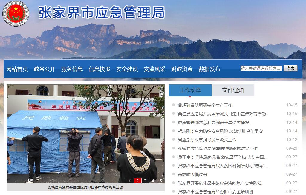 | 网站简介: 张家界市应急管理局,是张家界市机构改革新组建的单位,为张家界市人民政府工作部门。张家界市应急管理局2019年1月25日正式挂牌成立。 |