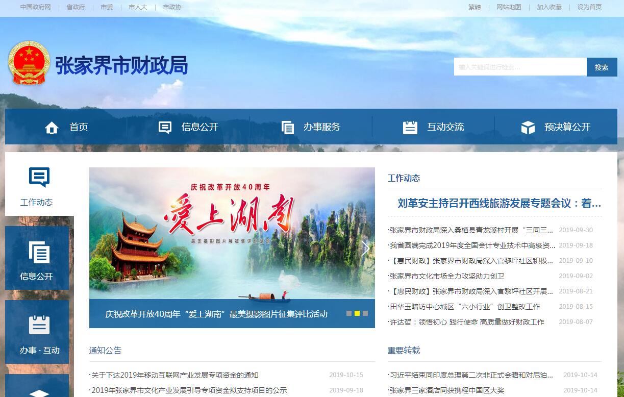 张家界市财政局是张家界市人民政府综合经济管理部门,其主要职责是:(一)贯彻执行财税方针政策,拟订和执行财政政策、改革方案,指导全市财政工作;分析预测宏观经济形势,参与制定各项宏观经济政策;提出运用财税政策实施宏观调控和综合平衡社会财力的建议;拟订和执行市与区,政府与企业的分配政策,完善鼓励公益事业发展的财税政策。(二)承担市本级各项财政收支管理的责任。负责编制年度市本级预决算草案并组织执行。代编全市财政收支预算,汇总全市财政总预算;受市人民政府委托,向市人民代表大会报告市本级、全市预算及其执行情况,向市人大常委会报告决算。组织制订市本级经费开支标准、定额,负责审核批复部门(单位)的年度预决算。深化财税体制改革,按照财权与事权相匹配的原则,调整完善专项转移支付制度,落实省直管县财政体制改革。(三)负责政府非税收入管理,建立健全政府非税收入管理制度;负责政府性基金管理,按规定管理行政事业性收费;管理财政票据。(四)组织制定国库管理制度、国库集中收付制度,指导和监督市本级国库业务,按规定开展国库现金管理工作。负责制定政府采购制度并监督管理。(五)负责制定全市行政事业单位国有资产管理规章制度,按规定管理行政事业单位和规定范围内的其他国有资产;负责财政预算内行政、事业单位和社会团体的非贸易外汇管理。(六)负责审核和汇总编制国有资本经营预决算草案,制定国有资本经营预算的制度和办法,收取市本级国有企业国有资本收益,组织实施企业财务制度,参与拟订企业国有资产管理相关制度,按规定管理资产评估工作。(七)负责办理和监督市级经济发展支出、市级政府性投资项目的财政拨款;参与拟订市建设投资的有关政策;组织实施基本建设财务制度;组织开展政府投资项目评审;负责有关政策性补贴和专项储备资金管理工作;负责农业综合开发管理工作。(八)会同有关部门监督管理市社会保障资金(基金),组织实施社会保障资金(基金)的财务管理制度,编报市级社会保障资金(基金)预决算草案。(九)贯彻执行政府债务管理的政策、制度和办法,防范财政风险。按规定管理外国政府和国际金融组织贷(赠)款。(十)负责管理全市的会计工作,监督和规范会计行为,组织实施国家统一的会计制度,组织实施会计行政法规规章,指导和监督注册会计师和会计师事务所的业务,指导和管理社会审计。(十一)监督检查财税法规、政策的执行情况,反映财政收支管理中的重大问题,提出加强财政管理的政策和建议。(十二)负责组织、协调和指导全市的财源建设工作。负责拟定财源建设政策并组织实施,组织编制和实施中长期财源建设发展规划。(十三)承办市人民政府交办的其他事项。