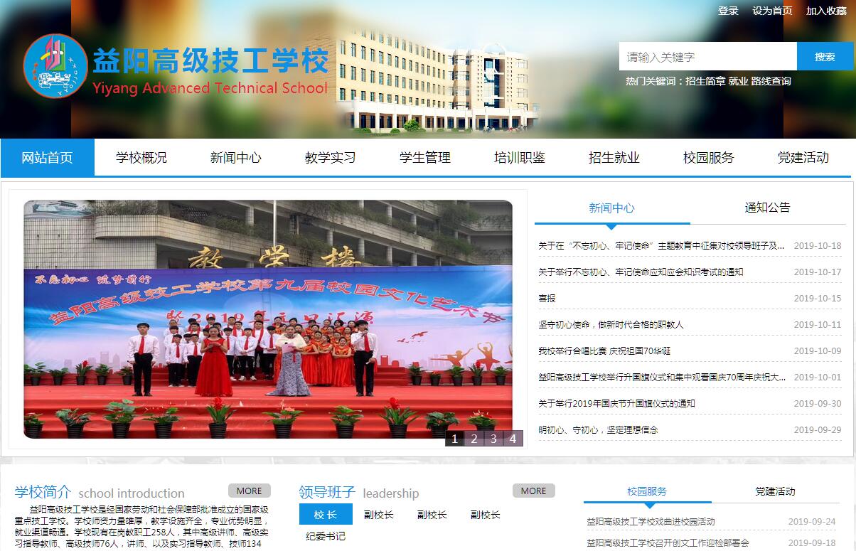 益阳高级技工学校是经国家人力资源和社会保障部批准的全日制公办学校。根据2004年益阳市委、市人民政府整合益阳中心城区教育资源的决定,由原益阳市第一技校(1977年)、第二技校(1976年)和省粮食第二技校(1980年)三所省(部)级重点骨干技校合并组建而成,并搬迁至现址(原益阳市农业学校)。是“国家级重点高级技工学校”,“湖南省示范性中职学校”,“全市农村劳动力再就业定点培训学校”,“全省高技能人才定点培训和全省考评员定点培训学校”,“全市扶贫培训‘雨露计划’示范教育学校”,“益阳市海事安全培训学校”,“益阳市高技能人才职业技能技术鉴定定点单位”。学校环境优美,占地面积137亩,在职在编教职工185人,其中高级以上职称83人,师资力量雄厚。学校开设了机械制造技术、机电技术应用、数控技术应用、模具制造技术、汽车制造与维修、电子商务、电算会计、电子电器应用、计算机平面设计、电脑文秘、旅游服务与管理、体育休闲服务与管理等专业,其中机械制造技术是省级示范特色专业,工具钳工是省级精品专业。学校积极推行“双证书”,可开展21个工种的初、中、高、技师的职业等级鉴定,学生在取得学历的同时,可以获得与专业相应的国家职业资格证书。学校实训条件优越,有9大专业实训场地1600多个实习工位,配备了2000多万元的实习实训设备,被确定为“中央财政支持机械制造加工实训基地”、“湖南省技工院校校企合作研修平台”、益阳市职业教育三大公共实训基地。是益阳市职工和职工院校技能竞赛赛点单位。学校连续承办了四届全市职工职业技能大赛和三届全市职校学生技能大赛。学校注重技能竞赛,师生多次在国家级、省市级竞赛中获奖,在全省技工院校中名列前茅。近年来,学校先后与中联重科、三一重工、东风日产、鸿准模具、广汽菲亚特、广州电装、南沙电装等100多家国内外知名企业签订就业合作协议,学生就业率高达96%以上。学校连续6年被湖南省人力资源和社会保障厅评为“招生就业工作先进单位”,连续四年被鸿准模具和东风日产公司评为“优秀合作学校”。学校秉承育人为本、工学结合、厚德强技、学以致用的办学理念,坚持质量立校、内涵强校、人才兴校,为社会培养了一大批生产、建设、管理、服务第一线的技能型人才。选择益阳高级技工学校,学得一技之长,走上成才致富之路。