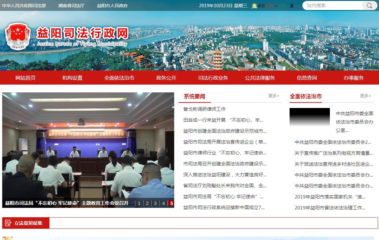 益阳市司法局主要职责:(一)承担全面依法治市重大问题的政策研究,协调有关方面提出全面依法治市中长期规划建议,负责有关重大决策部署督察工作。(二)承担统筹规划立法工作的责任。协调有关方面提出立法规划和年度立法工作计划的建议,负责跟踪了解各有关部门对立法工作计划的落实情况,加强组织协调和督促指导,研究提出立法与改革决策相衔接的意见、措施。负责面向社会征集法规规章制定项目建议。(三)负责起草或者组织起草有关地方性法规、规章草案。承办有关地方性法规和规章草案的审查工作。负责立法协调。(四)承办市政府规章的解释、立法后评估工作。负责协调各地区各部门实施法律法规和规章中的有关争议和问题。承办市政府规章报备、清理、编纂、翻译等工作。(五)指导全市规范性文件管理有关工作,承担市政府规范性文件送审稿的合法性审查和公平竞争审查工作。承办市政府及其部门规范性文件的统一登记、统一编号、统一公布工作。负责报送备案市政府规范性文件。负责区县(市)政府规范性文件备案审查工作。受理有关规范性文件违法的审查申请。组织开展规范性文件清理工作。(六)承担市委、市政府法律顾问工作。负责对市政府重大行政决策和重大行政管理活动以及市政府重大民商事法律事务进行合法性审查或论证说明。(七)承担统筹推进法治政府建设的责任。指导、监督市政府各部门、各区县(市)政府依法行政工作。负责综合协调行政执法,承担推进行政执法体制改革有关工作,推进严格规范公正文明执法。指导、监督全市行政复议、行政应诉工作,负责市政府行政复议和行政应诉案件办理工作。(八)承担统筹规划全市法治社会建设的责任。负责拟订法治宣传教育规划,组织实施普法宣传工作,组织对外法治宣传。推动人民参与和促进法治建设。指导依法治理和法治创建工作。指导调解工作和人民陪审员、人民监督员选任管理工作,推进司法所建设。(九)指导、管理社区矫正工作。指导刑满释放人员帮教安置工作。(十)负责司法行政戒毒场所管理工作。指导、监督本系统强制隔离戒毒执行和戒毒康复工作。对社区戒毒和社区康复工作提供指导、支持和协助。管理市强制隔离戒毒所。(十一)负责拟订公共法律服务体系建设规划并指导实施,统筹和布局城乡、区域法律服务资源。指导、监督律师、法律援助、司法鉴定、公证、仲裁和基层法律服务管理工作。(十二)负责全市国家统一法律职业资格考试的组织实施工作。负责全市国家统一法律职业资格和证书管理工作。负责规划和指导法律职业人员入职前培训工作。(十三)负责本系统警务装备的管理工作,指导、监督本系统财务、装备、设施、场所等保障工作。(十四)规划、协调、指导法治人才队伍建设相关工作。指导、监督本系统队伍建设。负责本系统警务管理和警务督察工作。协助各区县(市)管理司法局领导干部。(十五)完成市委、市政府交办的其他任务。
