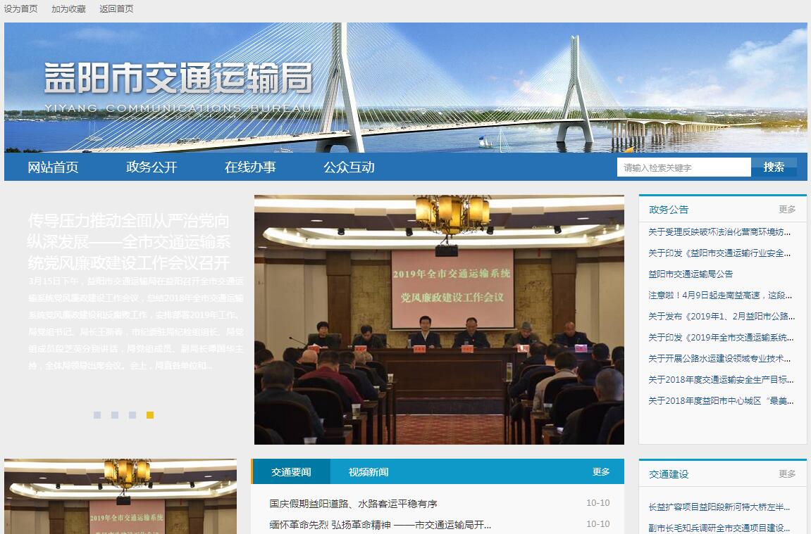 益阳市交通运输局,为市人民政府工作部门。其主要职责是:(一)拟订全市交通运输体系规划和年度计划;负责承担涉及综合运输体系的规划协调工作,会同有关部门组织编制全市综合运输体系规划,指导交通运输枢纽规划和管理。(二)组织拟订并监督实施全市公路、水路等交通行业规划、政策和标准;参与拟订物流业发展战略和规划,拟订有关政策并监督实施;指导全市公路、水路行业有关体制改革工作;负责交通运输执法检查和监督。(三)承担道路、水路运输市场和城市客运市场监管责任。组织制定全市道路、水路、城市客运有关政策、技术标准和运营规范并监督实施;负责全市城乡客运及有关设施规划和管理工作,负责出租车行业管理工作;负责涉及交通运输行业资质资格审批监督工作。(四)承担水上交通安全监管责任。负责水上交通管制、船舶及相关水上设施检验、登记和防止污染、水上消防、救助打捞、通信导航、船舶与港口设施保安及危险品运输监督管理等工作;负责船员管理有关工作;负责水上交通安全事故、船舶及相关水上设施污染事故的应急处置,依法组织或参与事故调查处理工作,负责全市水上交通安全监管工作。(五)负责提出全市公路、水路、城乡客货运输设施等固定资产投资规模和方向、财政性资金安排建议,按市政府规定权限审批、核准全市规划内和年度计划规模内固定资产投资项目。(六)承担公路、航道、港口、城乡客货运输设施建设市场监管责任。拟订全市公路、水路工程建设总体规划和年度计划并组织实施;负责对全市交通基础设施建设项目的工程设计、工程造价、施工和质量安全实施监督管理。(七)制定地方性交通运输行业科技政策、规划和规范并监督实施;指导全市交通运输信息化建设,监测分析运行情况,开展相关统计工作,发布有关信息;指导公路、水路行业环境保护和节能减排工作。(八)指导全市公路、水路行业安全生产和应急管理工作。按规定组织协调全市重点物资和紧急客货运输,负责全市重点干线路网运行监测和协调,承担全市交通战备工作。(九)指导交通运输行业开展对外交流合作和交通外经外贸工作。(十)承办市人民政府交办的其他事项。