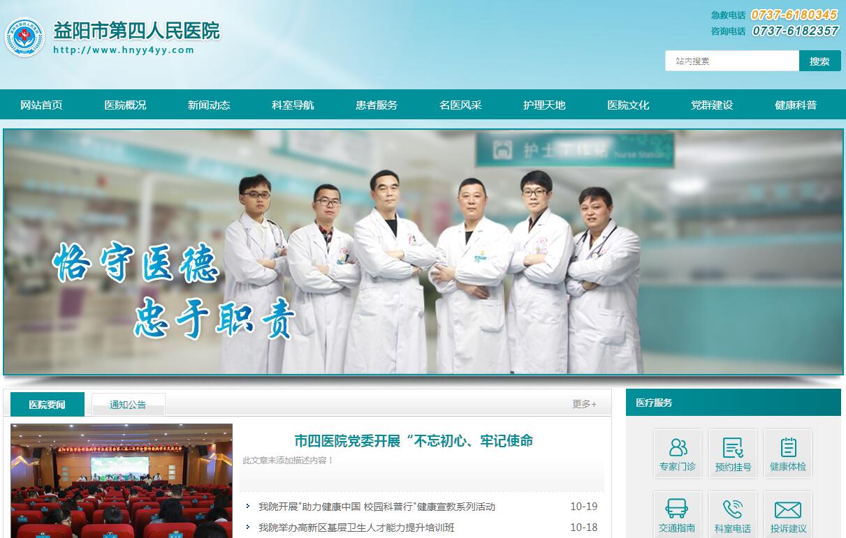 益阳市第四人民医院始建于1952年,是益阳市人民政府主办的市直副处级公共卫生医疗机构,是益阳市血吸虫病防治专科医院、益阳市传染病医院、益阳市精神卫生防治中心、益阳市公共卫生突发事件应急救治中心、益阳市动物咬伤医院,是我市唯一一所集临床医疗、专病专科、科研教学、预防保健、健康促进为一体的三级医院。近年来,医院发展迅速,加强专科联盟建设,与省部级多家医院建立密切合作关系,先后成为湖南省人民医院、湖南省脑科医院、湖南省胸科医院临床指导医院,湖南省儿童医院医联体单位,是益阳市首家湘雅二医院联盟医院,湖南中医药大学第一附属医院湘中医·医疗联盟单位;是湘雅医院医疗联合体骨科专科联盟医院,湘雅二医院脊柱专科医联体创始单位,南华大学附属南华医院蛇伤中毒专科联盟;是湖南省晚期血吸虫病救治定点医院、湖南省尘肺病农民工救治救助定点医院;是湖南中医药大学教学医院,益阳医学高等专科学校非直属附属医院,是湖南省首批公众急救知识技能普及工作试点医院。开设湘雅二医院名医益阳工作室,湘雅专家团队长驻医院,解决本地群众看名医难问题。目前正在开展三级甲等专科医院创建工作,综合实力和发展态势已崭露头角。医院现有干职工400余人,其中高级职称56名,中级职称90余名;医疗用房4万余平方米;编制床位420张,实际开放床位600张。科室设置齐全,设有肺病诊疗中心、肝病诊疗中心、感染综合科、急诊医学科、中毒中心、儿童医学中心、妇女医学中心、血液净化中心、动物咬伤专科、血防专科、内分泌科、消化内科、肾病科、风湿免疫科、肿瘤科、心血管内科、神经内科、呼吸内科、尘肺病科、中西结合科、中医康复科、普外科、肝胆外科、泌尿外科、肛肠科、骨科、脊柱外科、手足显微外科、感染康复科、精神科、心理中心、口腔科、眼科、耳鼻喉科、健康管理中心、临床检验中心、放射医学科、超声医学科、药剂科等40多个临床及医技科室。其中肺病诊疗中心是全省改善医疗服务行动计划优秀科室,肺病诊疗中心、肝病诊疗中心是湖南省临床重点专科建设项目,结核科、肝病科、血防专科、内分泌科、儿科为市级临床重点专科;急诊ICU、动物咬伤专科、中毒中心、脊柱外科、手足显微外科、尘肺病科、性艾科是市级特色发展专科;心血管内科、普外科、泌尿外科、精神科、骨科、妇产科、中西结合科是临床综合发展的重点科室。健康管理中心是我市目前唯一的湖南省健康管理质量控制中心委员单位。医院在血吸虫病治疗、晚血脾切除术、门脉断流术、分流术等外科手术居全省领先水平;小儿手足口病、猩红热、甲流、麻疹、乙脑重症肝炎、肺结核、性病艾滋病等传染性疾病及肝胆微创外科、脊柱外科、手足显微外科、消化内科疾病、肾病等的诊疗技术居全省先进水平,等积极开展动物咬伤救治技术,双膜血浆吸附、各种模式人工肝技术与肝纤维化检测,支气管镜下治疗结核,PICC深静脉置管,HIV病毒检测等新技术新项目,积极开展医学生教育、继续教育,省市级大型学术交流活动,积极承担省市科研项目,为医院发展增强后劲。医院设施齐全,拥有磁共振、GE16排32层CT、DR、移动式DR、C臂、飞利浦EPIQ5彩超、飞利浦CX50便携式彩超、腹腔镜、麻醉机、电子支气管镜、电子胃肠镜、全自动生化仪、血细胞分析仪、微量元素分析仪、睡眠脑电图仪、磁场刺激仪、生物反馈仪、音乐椅、动态血压、动态心电图、胰岛素泵、血透机、床旁血滤机、人工肝、除颤仪、碎石机、可视喉镜、肺功能仪、高频脉冲排痰仪、听力筛查仪、经皮黄疸测定仪、婴儿光疗暖箱、新生儿黄疸治疗仪、骨密度检测仪、各类呼吸机、心电监护仪等先进诊疗设备。医院环境优美,绿化面积占达50%,被评为省级园林式单位,院区设置规范、就医便捷安全、病房整洁舒适,24小时热水和中央空调为人民群众提供全方位全流程全周期的优质服务。医院全体干职工秉承“大医精诚、仁爱天下”的医院精神,谨遵“厚德载物、自强不息”的院训,围绕“质量立院、科教兴院、品牌强院”的办院理念,“大专科小综合”的办院思路,坚持“一切为了人民健康”的办院宗旨,坚持公立医院公益性,牢记社会与民生责任,团结一心、真抓实干、不断进取,以更加坚定的信心,更加昂扬的斗志,更加务实的作风,更加精湛的医术,更加仁爱的情怀,为全市人民的生命健康保驾护航!