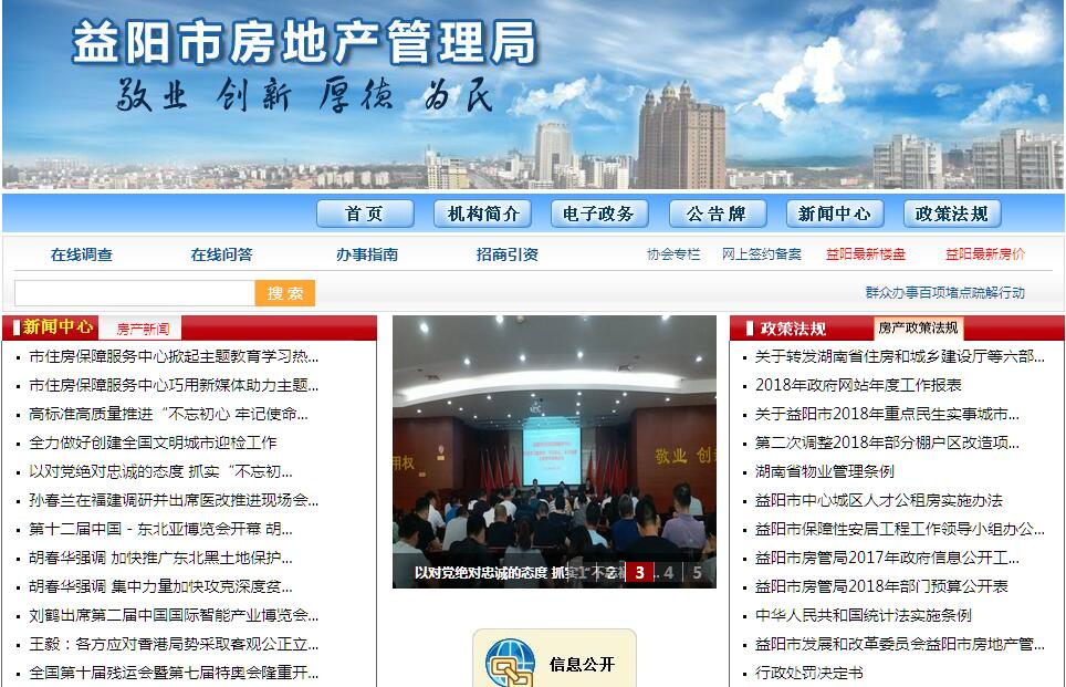 益阳市房地产管理局是1994年益阳撤区建市时由原益阳市房地产管理局和原益阳县房地产公司合并组建而成,历经多次机构调整变化, 现为市政府直属正处级事业单位。是主管全市房地产业和住房保障的职能部门。根据市人民政府授权,主要承担城市规划区内房地产业发展规划、住房保障、房地产开发、房地产管理等工作。具体负责实施住房保障工作、房地产开发管理、房屋权属登记、房屋交易鉴证、商品房预售、物业管理、城市房屋征收与补偿、房屋安全管理、房屋维修资金归集、白蚁防治等工作。局内设办公室、人事科、产权与市场管理科(政策法规科)、行政审批协调科、公房管理科、物业管理科、开发管理科(市场信息管理科)、房改科、财务科、局工会办公室、监察室等11个职能科室,下设市房屋产权产籍管理处、市房地产测绘队、市白蚁防治所、市房屋安全鉴定办公室、市房屋共用部位共用设施设备维修资金管理中心、市住房保障管理中心、市房地产档案馆、市房地产执法大队、市人民政府国有土地上房屋征收与补偿办公室等9个二级正科级事业单位。2013年,全局共有干部职工218人,其中在编167人,离退休51人,党员169人。市人民政府界定市房地产管理局承担的房地产行政管理和服务职能主要有八项,具体是:(一)贯彻执行住房保障、住房制度改革与房地产管理的方针、政策和法律、法规。根据城市建设总体规划拟订全市房地产业产业政策、 行业发展规划和年度计划并组织实施,负责房地产业行业管理。(二)承担规范房地产市场秩序、监督管理房地产市场的责任。会同有关部门组织拟订房地产市场监管政策并监督执行。 负责房屋产权产籍、房地产市场管理;监督管理房地产价格评估、房地产中介服务机构的资质;监督房地产交易、房产测绘及其成果应用。(三)承担城镇低收入家庭住房保障的责任。建立完善多层次的住房保障体系;拟订住房保障相关政策并指导实施,组织拟订全市城镇保障性住房发展规划 及年度计划并组织实施;会同有关部门做好政府有关廉租住房资金安排和资金监管;组织指导廉租住房、公租房屋、经济适用住房的建设,并对其使用或经营实施监督管理;指导棚户区改造。(四)承担推进住房制度改革的责任。拟订适合市情的住房制度改革政策和方案并组织实施,指导和推进住房制度改革; 负责市本级存量公有住房出售、职工住房补贴和租金改革方案的审核。(五)负责市本级国有国土上房屋征收与补偿的管理与协调工作;负责市本级大型工程项目和市政建设项目的国有土地上房屋征收与补偿的具体组织实施; 指导区、县、市国有土地上房屋征收与补偿工作;负责城市危险房屋安全鉴定的监督管理;负责白蚁防治工作。承担房屋装饰装修影响房屋安全及白蚁防治的监督管理责任。(六)负责房地产开发活动的监督管理,负责开发项目审核、商品房销售管理;负责住房置业担保的监督管理,规范直管公房经营行为,指导社会房屋经营。(七)负责城市规划区内房屋共用部位共用设施设备维修资金归集、管理;负责监督管理物业管理企业的资质和物业管理行为。 负责城市规划区内私有房屋(含外籍人员房屋)监督管理,协助资阳区、赫山区处理和落实私房政策遗留问题。(八)承办市人民政府交办的其他事项。