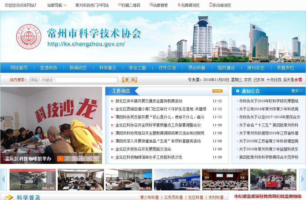 常州市科学技术协会成立于1959年5月,是科技工作者的群众组织,是党和政府联系科技人才的桥梁和纽带,是推动科技事业发展的重要力量。主要职能是“四服务一加强”,即服务科技工作者、服务创新驱动发展战略、服务公民科学素质提高、服务党委政府科学决策,真正成为党领导下团结联系广大科技工作者的人民团体、提供科技类公共服务产品的社会组织、国家创新体系的重要组成部分。主要承担决策咨询,促进科学决策;繁荣学术交流,推进自主创新,促进产学研结合;普及科学知识,提高全民科学素质;开展引智引知、对外科技交流与合作、科技咨询与培训等活动。近年来,市科协围绕中心工作大局,全面实施了以产学研为主题的“彩虹”工程、科技惠农的“金穗”工程和人才服务的“金领”工程,畅通了“软课题”和“科技工作者建议”两大建言献策渠道,创立了“科技论坛”和“学术活动月”两大高层次科技平台,牵头实施了《全民科学素质纲要》四大行动和五大工程,培育了全国科普宣传周、全国科普日、青少年科技创新大赛、优秀科技论文评选等系列品牌活动,开辟了对台湾、日本、欧美等国(境)外科技交往,在推进我市科技经济社会又好又快发展中发挥了积极的推动作用。目前,市科协所属共有61个市级学(协、研究)会(1200多个团体单位,21300多名个人会员),45个企事业科协,7个辖市(区)科协,11个院校科协,20个街道科协,40个乡镇科协,328家农村新经济合作组织、150家各级科普教育基地。常州市科协已成为跨地区、跨部门、跨所有制、学科齐全、人才荟萃的科技工作者的人民团体。在建设创新型国家的战略新阶段,在推进常州现代化建设的历史新时期、科协组织将进一步彰显职能、发挥作用,扬帆远航,破浪前进。