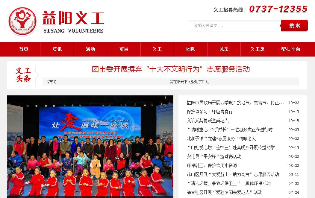| 网站简介: 为健全我市志愿者服务组织体系,规范志愿者组织管理,壮大志愿者队伍,加强对志愿者的注册、培训、管理、评选、表彰、奖励等 工作,进一步推动全市志愿者服务活动的开展,建立全市统一志愿者网络注册和管理系统,建立全市志愿者信息库,开发建设了益阳志愿者服务网。益阳市志愿者服务网系益阳市志工办所属,管理全市志愿者的平台,建立全市志愿者的档案管理、参与活动管理以及服务时间管理,以网 上平台为中心统一管理志愿者,以区县市义工联、志愿者协会、市直项目组和团体为分类。并实现以志愿者活动为基本事件,实现志愿者之间的高度互动交流,让志愿者依托网络可以更好的了解信息与参与活动。 |