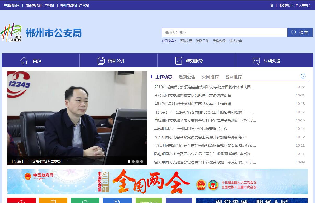 郴州市公安局主要职责:(一)贯彻执行国家有关公安工作的方针、政策和法律、法规;组织、指导、监督、检查全市公安工作。(二)掌握影响稳定、危害国内安全和社会治安的情况,分析形势、制定对策;防范处置邪教、非法宗教组织的违法犯罪活动。(三)组织、指导案件的侦查工作,协调处置重大刑事案件(事件)、危害国家安全犯罪案件、治安事故和骚乱等重大案件(事件)。(四)组织、指导、监督全市公安机关依法查处危害社会治安秩序的行为;依法管理户口、居民身份证、危险物品、特种行业和公共场所等工作。(五)依法管理国籍工作;组织指导出境、入境和外国人在境内居留、旅行的有关管理工作;指导、协调并承担涉外案件的查处。(六)组织、指导、监督全市消防工作。(七)组织、指导、监督全市公安机关维护道路交通安全、交通秩序以及机动车辆、驾驶员管理工作;指导、参与重大交通事故的查处;管理市公安局交通警察支队。(八)指导、监督全市公安机关对国家机关、社会团体、企事业单位和重点建设工程的治安保卫工作以及群众性治安保卫组织的治安防范工作。(九)指导、监督全市公安机关对网络的安全保卫工作。(十)指导、监督全市公安机关依法承担的执行刑罚和监督、考察工作;指导、监督全市公安机关对看守所、治安拘留所、强制隔离戒毒所、收容教育所等的管理工作;管理市监管中心。(十一)指导、监督全市公安机关收容教养审批工作。(十二)组织实施对来郴党的国家领导人以及重要外宾、重要会议的安全警卫工作。(十三)组织、指导、监督全市公安机关开展禁毒、缉毒工作;承担市禁毒委员会办公室的日常工作。(十四)组织实施公安科学技术工作;规划公安信息技术、刑事技术、网络安全技术和行动技术、指挥系统等建设。(十五)组织、指导全市公安机关装备、被装配备的计划、申报、分配、管理工作;负责申报公安业务经费和专项拨款的分配计划并监督、管理使用情况。(十六)统一领导公安消防部队建设;对武警郴州支队执行公安任务及相关业务建设实施领导和指挥。(十七)指导全市公安队伍建设和思想政治工作;负责公安机关人员培训、教育、奖惩、优抚及公安宣传工作;负责全市公安民警的警衔和警察证件管理;按规定权限审核公安机构和管理干部。(十八)制定全市公安队伍监督管理工作规章制度,组织、指导全市公安机关督察工作;按规定权限实施对干部的监督;指导、督促、检查全市公安机关的执法活动;查处或督办公安队伍重大违纪案件。(十九)组织、指导、协调对恐怖活动的防范、侦查工作。(二十)承办市人民政府交办的其他事项。