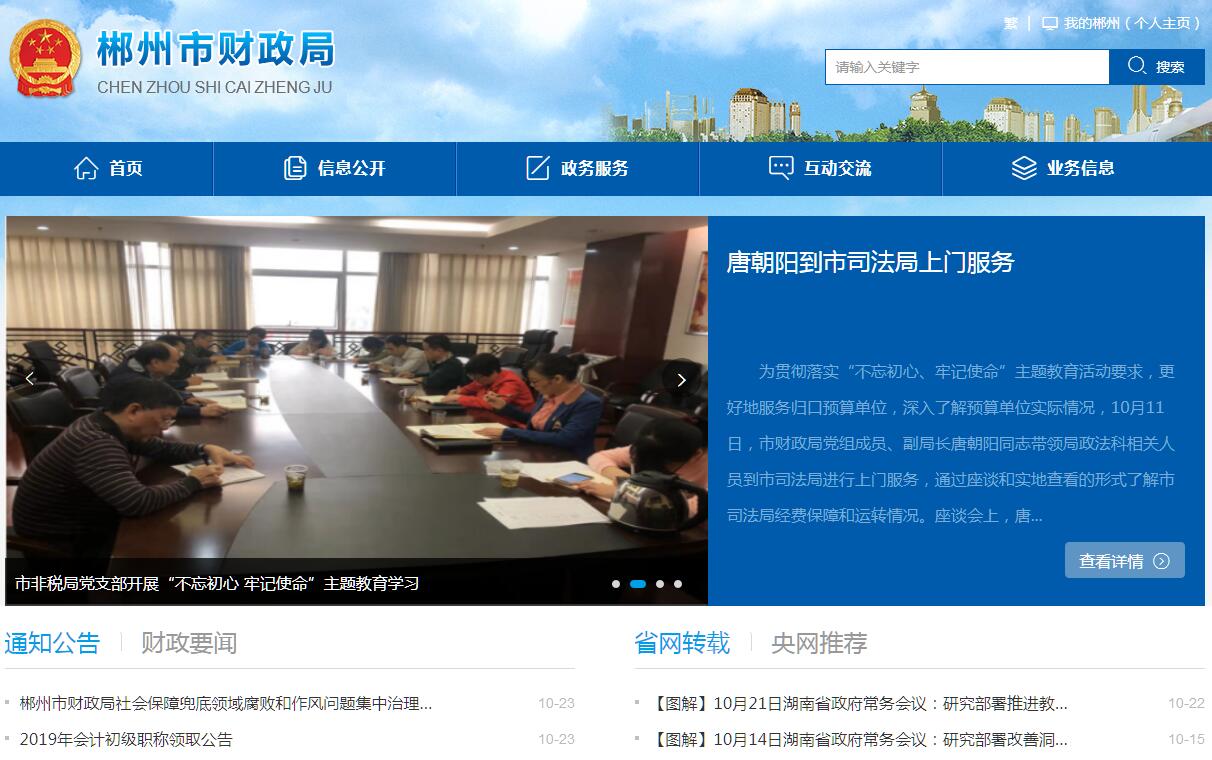 郴州市财政局主要职责:(一)组织贯彻执行国家财税方针政策,拟订和执行全市财政政策、改革方案,指导全市财政工作;分析预测宏观经济形势,参与制定各项宏观经济政策;提出运用财税政策实施宏观调控和综合平衡社会财力的建议;贯彻落实和拟订执行有关分配政策,完善鼓励公益事业发展的财税政策。(二)起草财政、财务、会计管理的规范性文件,制定和执行财政、财务、会计管理的制度及办法,参与配合涉外财政、债务等的国际谈判并签订有关协议、协定。(三)承担市本级各项财政收支管理的责任。负责编制市本级年度预决算草案并组织执行。代编全市财政收支预算,汇总全市财政总决算;受市人民政府委托,向市人民代表大会报告市本级、全市预算及其执行情况,向市人大常委会报告决算。组织制定市本级经费开支标准、定额,负责审核批复部门(单位)的年度预决算。(四)负责政府非税收入管理,负责政府性基金管理,按规定管理行政事业性收费。管理财政票据。(五)组织制定国库管理制度、国库集中收付制度,指导和监督市本级国库业务,按规定开展国库现金管理工作。负责制定政府采购制度并监督管理。(六)贯彻执行国家税收法律、行政法规和税收调整政策,反馈政策执行情况,提出调整建议。研究执行有关税收政策及税收政策调整方案并组织实施,按照规定权限,审核、申报地方税收的减免事项。(七)负责制定全市行政事业单位国有资产资源管理规章制度,按规定管理行政事业单位国有资产,制定需要全市统一规定的开支标准和支出政策,负责财政预算内行政、事业单位和社会团体的非贸易外汇管理。(八)负责审核和汇总编制全市国有资本经营预决算草案,制定国有资本经营预算的制度和办法,收取市本级企业国有资本收益,组织实施企业财务制度,按规定管理地方金融类企业国有资产,参与拟订企业国有资产管理相关制度,负责未纳入市国资委监管企业的国有资产管理,按规定管理资产评估工作。(九)负责办理和监督市财政的经济发展支出、市级政府性投资项目的财政拨款,参与拟订市建设投资的有关政策,组织实施基本建设财务制度,负责有关政策性补贴和专项储备资金财政管理工作。负责农业综合开发管理工作。(十)会同有关部门管理市财政社会保障和就业及医疗卫生支出,组织实施社会保障资金(基金)的财务管理制度,编制市社会保障预决算草案。(十一)贯彻执行政府内外债务管理的政策、制度和办法,防范财政风险。负责统一管理市政府外债,制定基本管理制度。按规定管理外国政府和国际金融组织贷(赠)款。承担财税领域需要对外交流与合作的具体工作。(十二)负责管理全市的会计工作,监督和规范会计行为,组织实施国家统一的会计制度和省会计法规规章,指导和监督注册会计师和会计师事务所的业务,指导和管理社会审计。(十三)负责对各县市区财政工作进行业务指导,监督检查各县市区和市级各部门财税法规、政策的执行情况,反映财政收支管理中的重大问题,提出加强财政管理的政策和建议。(十四)负责全市财源建设项目规划制定,项目的考察、融资、论证、评估、考核与实施,建设财政专项资金投放项目库。(十五)承办市委、市人民政府交办的其他事项。