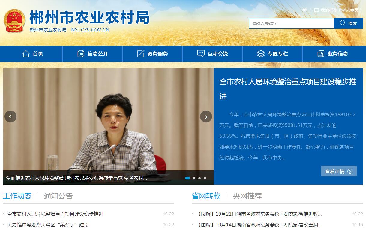 郴州市农业农村局主要职责:(一)负责全市农业、农村工作的协调和综合工作,组织研究全市农业、农村发展和改革中的问题,提出农业、农村发展和改革的政策建议,指导农村发展和改革工作。(二)组织拟订全市统筹城乡发展规划、政策建议,组织、指导、协调统筹城乡发展有关工作;会同有关部门研究提出城乡经济社会发展一体化体制机制改革的建议,指导协调县域经济和新农村建设,研究提出县域经济发展和新农村建设的政策与规划建议,参与农村小城镇规划和建设的有关工作,参与农村社会事业发展工作。(三)贯彻执行国家种植业、畜牧业、渔业、农业机械化、农产品加工业、农垦等农业各产业(以下简称农业)发展的方针政策,拟订我市农业发展的政策和规划并指导实施,参与涉农的财税、价格、金融保险、进出口等政策制定,推进农业依法行政。(四)研究提出稳定和完善农村经营管理体制的建议,指导农村土地承包、耕地使用权流转和承包纠纷仲裁管理,指导、监督减轻农民负担和村民筹资筹劳管理工作,检查监督惠农政策的落实,指导村级集体经济发展、农村集体经济组织建设和资产财务管理,拟订全市农业产业化经营的发展规划与政策并组织实施,指导、扶持农业社会化服务体系、农村合作经济组织、农民专业合作社和农产品行业协会的建设与发展。(五)指导粮食等主要农产品生产,组织落实促进粮食等主要农产品生产发展的相关政策措施,引导农业产业结构调整和产品品质改善,会同有关部门指导农业标准化、规模化生产;提出农业固定资产投资规模和方向、市级财政性资金安排的建议,按权限审批、核准规划和计划内固定资产投资项目;编报部门预算并组织执行,提出扶持农业农村发展的财政政策和项目建议,经批准后与财政部门共同制定实施方案并指导实施;拟订农业开发规划并监督实施;配合财政部门组织实施农业综合开发项目。(六)促进农业产前、产中、产后一体化发展,组织拟订促进农产品加工业发展政策、规划并组织实施,提出农业产业保护政策建议,指导农产品加工业结构调整、技术创新和服务体系建设;提出促进大宗农产品流通的政策建议,研究制定大宗农产品市场体系建设与发展规划;培育、保护和发展农产品品牌;组织协调“菜篮子”工程。(七)承担提升农产品质量安全水平的责任,依法开展农产品质量安全风险评估,发布有关农产品质量安全状况信息,负责农产品质量安全监测;贯彻执行农业转基因生物安全评价标准和技术规范,负责农业转基因生物安全监督管理和农业植物新品种保护;会同有关部门贯彻执行农产品质量安全国家标准、地方标准;指导农业检验检测体系建设和工作考核;组织符合安全标准的农产品认证申报和监督管理;组织、指导农产品质量安全、畜禽屠宰的监督管理。(八)组织、协调农业生产资料市场体系建设,贯彻执行国家有关农业生产资料标准,依法组织、指导农作物种子(种苗)、草种、种畜禽、农药、农用肥料、兽药、兽医器械、饲料、饲料添加剂、食用菌菌种的监督管理;依法组织、指导渔船、渔港、渔机、网具及渔业安全生产的监督管理;组织、指导农业机械化发展和农机安全监督,组织、指导实施农机惠农政策。(九)负责农作物重大病虫害防治,贯彻执行国家动植物防疫检疫法律法规和政策,会同有关部门制定地方性动植物防疫政策建议并指导实施,指导动植物防疫和检疫体系建设;组织、监督对市内动植物的防疫检疫工作,发布疫情并组织扑灭;组织植物检疫性有害生物普查;承担境外引进农作物种子(种苗)检疫管理工作;组织、指导兽医医政、兽药药政药检和执业兽医管理工作。(十)承担农业防灾减灾的责任,监测、发布农业灾情,组织种子、化肥等救灾物资储备和调拨,提出生产救灾资金安排建议,指导紧急救灾和灾后生产恢复。(十一)管理农业和农村经济信息,监测分析农业、农村经济运行,开展相关农业统计工作;采集、发布农业和农村经济信息,负责农业信息体系建设,指导农业信息服务。(十二)制定农业科研、农技的规划、计划和有关政策并指导实施;会同有关部门组织全市农业科技创新体系和农业产业技术体系建设,会同有关部门实施科教兴农战略,按分工组织实施农业科研重大专项;组织实施农业领域的高新技术和应用技术研究、农业科技成果转化和技术推广;负责农业科技成果管理,组织引进境外农业先进技术,指导农技推广体系改革与建设。(十三)会同有关部门拟订农业农村人才队伍建设规划并组织实施,指导协调农民教育培训,农业教育和农业职业技能开发工作,参与实施农村实用人才培训工程,承担农村劳动力就地就近就业培训工作,会同有关主管部门依法实施农业农村人才专业技术资格和从业资格管理。(十四)组织农业资源区划工作,指导农用地、渔业水域、草原、宜农滩涂、宜农湿地以及农业生物物种资源的保护和管理,负责水生野生动植物保护工作;拟订耕地及基本农田质量保护与改良政策并指导实施,依法管理耕地质量,发展节水农业。(十五)制定并实施农业生态建设规划,指导农村可再生能源综合开发与利用,指导农业生物质产业发展和农业农村节能减排,承担指导农业面源污染治理有关工作;划定农产品禁止生产区域,指导生态农业、循环农业等发展;负责保护渔业水域生态环境