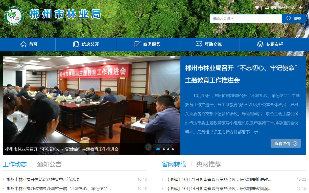 郴州市林业局主要职责:(一)负责全市林业及其生态建设的监督管理。拟订林业及其生态建设的方针政策、发展战略、中长期规划,并监督实施。参与拟订有关市级规定并指导实施。组织开展森林资源、陆生野生动植物资源、湿地和石漠的调查、动态监测和统计。承担林业生态文明建设的有关工作。(二)组织、协调、指导和监督全市造林绿化工作。制定全市造林绿化的指导性计划,组织拟订相关市级规定并监督执行。指导、监督各类生态公益林和商品林的培育工作,组织指导林木种苗、林木花卉工作,指导植树造林、封山育林和以植树种草等生物措施防治水土流失工作,指导、监督全民义务植树、造林绿化工作。承担林业应对气候变化的相关工作。承担市绿化委员会的具体工作。(三)承担森林资源保护发展监督管理的责任。组织、指导、监督林业资源保护管理。组织编制并监督执行全市森林采伐限额,监督检查林木凭证采伐、运输;组织、指导全市林地、林权管理工作,组织实施林权登记、发证工作,拟订林地保护利用规划并指导实施,依法承担应由国家、省政府批准的林地征用、占用的审核。承担临时占用林地的审核或审批。指导国有林区的国有森林资源管理,承担国有林区的国有森林资源资产产权变动的审查工作。(四)组织、协调、指导和监督全市湿地保护工作。拟订湿地保护的有关市级规定,拟订全市性、区域性湿地保护规划。组织实施建立湿地保护小区、湿地公园等保护管理工作。组织、监督湿地的合理利用。组织、协调全市湿地保护和有关国际湿地公约的履约工作。(五)组织、协调、指导和监督全市石漠化防治工作。组织拟订全市石漠化防治建设规划,参与拟订相关市级规定并监督实施,监督石漠化土地的合理利用,组织、指导建设项目对土地石漠化影响的核查,组织、指导石漠化灾害预测预报和应急处置。(六)组织、指导陆生野生动植物资源的保护和合理开发利用。依法组织、指导陆生野生动植物的救护繁殖、栖息地恢复发展、疫源疫病监测,监督管理全市陆生野生动植物猎捕或采集、驯养繁殖或培植、经营利用与运输,监督管理野生动植物进出口。承担国家、省重点保护的陆生野生动植物或其产品出口和中国参加的国际公约限制进出口的野生动植物进出口申报工作。负责全市古树名木保护管理。(七)负责林业系统自然保护区的监督管理。在国家和省级自然保护区区划、规划原则的指导下,依法指导森林、湿地、荒漠化和陆生野生动物类型自然保护区的建设和管理,监督管理林业生物种质资源、林业转基因生物安全、植物新品种保护。按分工负责生物多样性保护的有关工作。(八)承担推进林业改革,维护农民经营林业合法权益的责任。拟订集体林权制度等重大林业改革意见并指导监督实施。拟订全市农村林业发展、维护农民经营林业合法权益的政策措施,指导、监督农村林地承包经营和林权流转,指导林权纠纷调处和林地承包合同纠纷仲裁。依法负责退耕还林工作。指导国有林场(苗圃)、集体林场、森林公园和基层林业工作机构的建设和管理。(九)制定全市林业产业发展政策,合理调整林业产业发展布局,促进林业产业协调发展。监督检查各产业对森林、湿地、荒漠和陆生野生动植物资源的开发利用。制定林业资源优化配置政策,按照国家、省、市有关规定,拟订林业产业市级规定并监督实施,组织指导林产品质量监督,指导赴境外森林资源开发的有关工作。指导山区综合开发。负责油茶等经济树种的开发利用工作。(十)承担组织、协调、指导、监督全市森林防火工作的责任。组织、协调、指导专业森林扑火队伍开展防火、扑火工作,承担市森林防火指挥部的具体工作。承担林业行政执法监管的责任,指导全市森林公安工作,监督管理森林公安队伍,组织、指导全市林业重大违法案件的查处。指导林业有害生物的防治、检疫工作。(十一)拟订全市林业发展战略、中长期发展规划。参与拟订林业发展的经济调节意见,提出林业产业发展的有关政策建议。监管国有林业资产,管理市级林业资金,监督全市林业资金的管理和使用。组织申报全市林业建设重点工程项目计划,组织、指导全市林业基本建设;组织、指导林业及其生态建设生态补偿制度的建立和实施。编制部门预算并组织实施,负责提出林业固定资产投资规模和方向、市级财政性资金安排建议,按市政府规定的权限,审批、核准市级规划内和年度计划内固定资产投资项目。编制全市林业及其生态建设的年度生产计划。(十二)组织、指导林业及其生态建设的科技和外事工作,指导全市林业队伍的建设。(十三)承办市人民政府交办的其他事项。