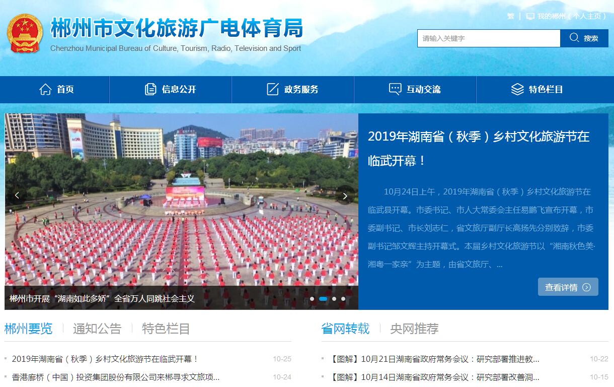 郴州市文化旅游广电体育局贯彻落实党中央关于文化、旅游、广播电视、体育、文物工作的方针政策和决策部署,全面落实省委、市委关于文化、旅游、广播电视、体育、文物工作的部署要求,在履行职责过程中坚持和加强党对文化、旅游、广播电视、体育、文物工作的集中统一领导。其主要职责是:(-)负责起草历史文化保护方面的地方性法规、规章草案。研究拟订全市文化、旅游、广播电视、体育、文物政策措施、事业和产(行)业发展规划并组织实施,推进文化、旅游、广播电視、体育、文物融合发展,推进全市文化、旅游、广播电视、体育、文物领域的体制机制改革。(二)指导、管理全市文艺事业,指导艺术创作生产,扶持体现社会主义核心价值观、具有导向性代表性示范性的文艺作品,推动各门类艺术、各艺术品种发展。(三)负责全市公共文化事业发展,推进文化、旅游、广播电视、体育、文物公共服务体系建设,深入实施惠民工程,统筹推进基本公共文化服务标准化、均等化。指导、协调、监督全市文化体育设施建设。指导、推进全市文化、旅游、广播电视、体育、文物科技创新发展,推进行业信息化、标准化建设。(四)负责全市非物质文化遗产保护,推动非物质文化遗产的保护、传承、普及、弘扬和振兴。(五)统筹规划全市文化、旅游、广播电视、体育产业,组织实施资源普查、挖掘、保护和利用工作,促进产业发展。(六)组织、指导全市文化市场综合行政执法工作。对文化、旅游、广播电视、体育市场经营进行行业监管,指导、监督文化旅游、广播电视、体育行业所管领域的安全生产工作,推进全市文化、旅游、广播电视、体育行业信用体系建设,依法规范市场秩序。(七)组织、指导全市文化、旅游对外及对港澳台交流、合作和宣传、推广工作,组织实施全市国内、国际文化旅游市场开发战略。(八)指导、监督广播电视、网络视听节目服务机构业务工作,承担广播电视安全播出和节目传播的监测、监管,负责广播电视节目、网络视听节目和公共视听载体播放的视听节目内容和质量的审查。管理全市广播电视频率、频道。组织实施全市广播电视村村通工作。负责推进广播电视与新媒体新技术新业态融合发展和广电网与电信网、互联网三网融合。(九)组织实施《全民健身计划》和国家体育锻炼标准,承担组织考核评估工作,指导、管理全市重大群众体育活动,依法监管高危体育项目。组织实施“奥运争光计划”,负责竞技体育项目设置、布局、规划管理工作,指导全市竞技体育训练和竞赛工作,组织参加和承办国际、全国、全省、全市性体育竞赛。(十)协调指导全市文物和博物馆安全防范工作,指导全市文物安全责任落实。负责全市世界文化遗产和历史文化名城(镇、村)的审核、申报、保护和监督管理相关工作。管理和指导全市考古挖掘、文物保护工作。组织、协调重大文物保护和考古项目的实施。承担全国重点文物保护单位、省级文物保护单位的申报工作。负责文物保护利用和博物馆有关审核、审批事务及相关资质认定的管理工作。组织、指导文物保护宣传工作,组织开展重大文物保护科学创新工程,促进文物保护科学成果的转化和推广。(十一)制订全市文化旅游广播电视体育文物管理队伍建设、人才培养和教育培训规划并组织实施。会同有关部门指导、监督管理文化旅游广播电视体育从业人员职业资格工作,承担有关专业人员资格认定和技术职务评审组织工作。指导市级有关行业社团的工作。指导全市有关院校开展文化、旅游、体育教育的有关工作。(十二)完成市委、市政府交办的其他任务。