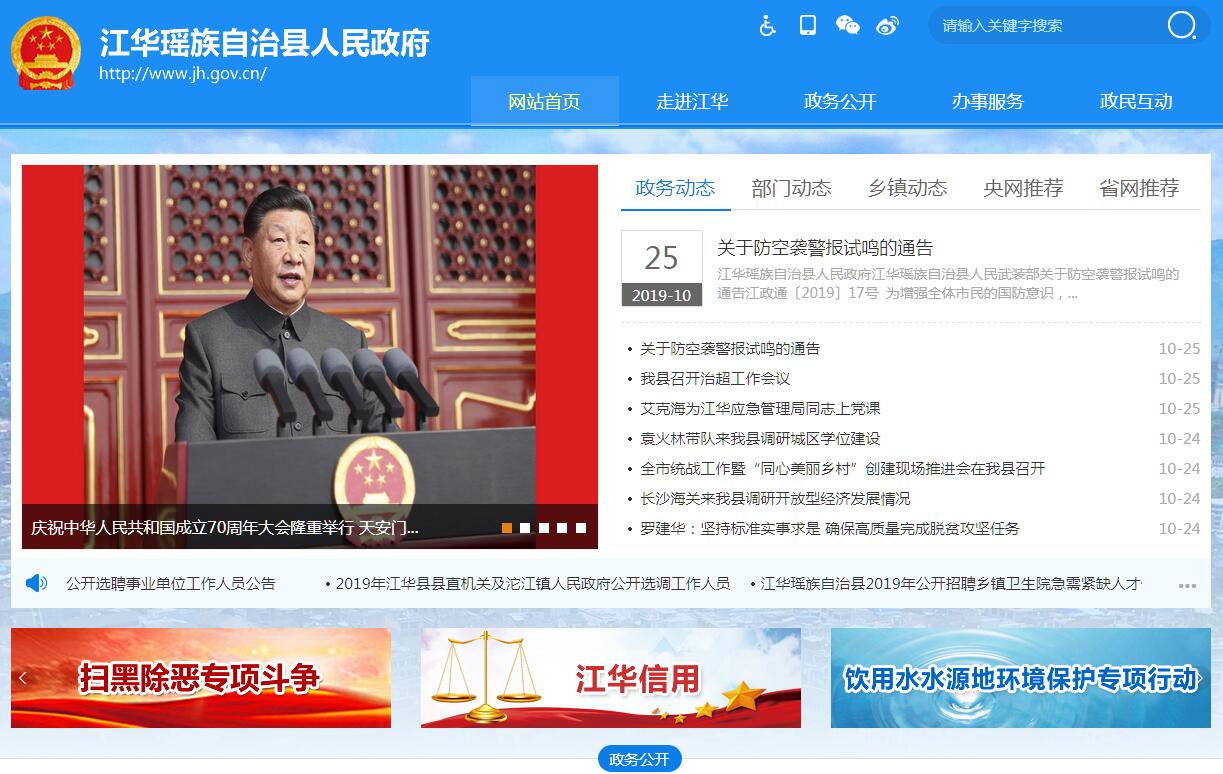 江华,古称冯乘,汉武帝元鼎六年(公元前111年)置冯乘县,唐武德四年(621年)析冯乘县置江华县,至今已有2100多年历史。全县总面积3248平方公里,总人口54万,其中瑶族人口36万,辖16个乡镇1个国有林场,319个村(居)民委员会(其中城市社区24个、农村社区19个)。是一个集“老、少、边、穷、库、大、快为一体”的县。“老”,即革命老区县。江华人杰地灵,有深厚的革命传统,孕育了中国共产党建党时57名党员中的两名早期党员李启汉、陈为人以及江华(原最高人民法院院长)等老一辈无产阶级革命家。邓小平率领的红七军、长征时的中央红军都曾在这里浴血奋战。2008年被省人民政府认定为革命老区县。“少”,即瑶族自治县。江华1955年成立瑶族自治县,是湖南省唯一的瑶族自治县,是全国13个瑶族自治县中瑶族人口最多的县,是瑶族集中聚居区居于中心位置的县,是瑶族自治县中经济发展水平排第一的县。建有瑶族第一殿盘王殿、世界最大的瑶族图腾坊、世界最大的瑶族铜铸长鼓,拥有全省唯一的县级民族歌舞团和县级民族艺术学校,《瑶族长鼓舞》《盘王大歌》被列为国家级非物质文化遗产。被评为中国民间文化艺术之乡、中国瑶族文化传承研究中心,是世界瑶族的寻根之地、朝觐之地。原全国人大副委员长费孝通称之为“神州瑶都”。“边”,即省际边界县。江华位于湘、粤、桂三省(区)结合部,分别与广东、广西各三个县(市、区)相邻。县城距长沙460公里、距广州370公里、距南宁530公里,到桂林两江国际机场200公里,到郴州高铁站170公里,到贺州高铁站110公里,码市镇距广州260公里。洛湛铁路、G207贯通南北,S355横穿东西,县城通过道贺高速与厦蓉高速、二广高速、桂广高速等交通大动脉相连。 “穷”,国家扶贫开发工作重点县。2001年、2011年都被确定为国家扶贫开发工作重点县,但没有列入国家集中连片特困地区范围。有建档立卡贫困人口28140户112934人、贫困村112个,截至2018年底,已脱贫26452户108511人,112个贫困村全部脱贫出列,综合贫困发生率为0.96%,错退率为0、漏评率为0、群众认可度为97.26%。达到脱贫摘帽要求,由省人民政府批准摘帽退出。“库”,库区移民县。江华是湖南省水利一号工程——涔天河水库扩建工程所在地。工程总投资约130亿元,搬迁移民2.8万多人,2017年底大坝下闸蓄水,总库容达15.1亿立方米,电站装机20万千瓦,年平均发电4.57亿度,设计灌溉面积111.46万亩。移民搬迁安置后,我们通过建设安置点标准厂房、制订落实移民就业创业扶持办法等措施,确保了移民“搬得出、稳得住、能致富”。“大”,资源大县。江华是湖南省县域面积排12位的县。自然资源比较丰富,天上有风能、山上有森林、山下有水能、地下有矿产。全县风能可开发量60万千瓦以上,已开发35万千瓦。全县森林覆盖率78.78%,是全国南方重点林业县、湖南省林业十强县。境内水能已开发量40万千瓦。是全省光照时间最长资源最好的县区,建成了装机43MW的光伏扶贫发电站。有大型稀土矿、中型铜铅锌矿、钨锡矿、铀矿和铁矿。江华山雄、水秀、洞奇、林幽,冬暖夏凉、气候宜人,素有“天然氧吧”“华南之肺”的美誉,被评为“中国观赏石之乡”“中国天然氧吧”。现已成功创建涔天河国家湿地公园、潇湘源国家水利风景区、大龙山省级森林公园等核心景区;建成瑶族文化园、香草源、井头湾、秦岩、宝镜、桐冲口6个3A级景区;达到三星标准酒店8家、准五星级酒店1家,酒店、客栈、民宿、农家乐等有客房7000多间,可同时接待1.1万余人住宿。目前,江华正在创建全国旅游扶贫示范县。“快”,经济发展快县。近年来,江华践行新发展理念,全力贯彻落实创新引领开放崛起战略,大力实施“生态立县、产业强县、民营活县、开放兴县”,经济社会进入发展快车道,连续被评为省县域经济发展快县、省全面小康推进工作十快进县、省全面小康推进工作前十位县。2018年,全县完成GDP125.39亿元,增长8.5%;完成财政总收入12.71亿元,增长10.8%;固定资产投资增长11.9%;完成规模工业增加值43亿元,增长7.6%;完成社会消费品零售总额51.29亿元,增长10.6%;实现城镇居民人均可支配收入24775元,增长8.7%;实现农村居民人均可支配收入10625元,增长10.8%;实现外贸进出口总额4.08亿美元,增长82%;小康建设总体实现程度预计为99.02%。主要经济指标增幅和绩效考核连续五年排全市第一。全县近年来共获得全国文明县城、全国社会管理综合治理先进县、全国法治先进县、国家生态文明建设示范县、国家园林县城、全国民族团结进步示范县等国家级荣誉40余项;获得省工业发展真抓实干先进县、省安全生产示范县、省金融安全区、省平安县(连续十三年)等省级荣誉80余项。2018年6月,成功举办了江华历史上规格最高的会议——全省优化发展环境现场推进会。“江华速度”“江华精神”被家毫书记肯定,“江华速度”写入省十三届人大二次会议政府工作报告,向全省推介。
