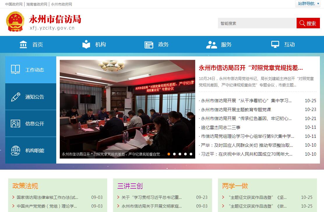 永州市信访局的主要职责是:1、负责处理中央、国家机关、省委、省人大、省政府、省政协统转信件,负责处理人民群众和境外人士给市委、市人民政府及其领导同志的来信,接待人民群众到市委、市人民政府来访、做好市委、市政府领导同志接待上访群众的组织服务工作。2、承办中央和国家机关、省委和省人民政府、市委和市人民政府及市委办公室、市人民政府办公室交办的信访事项,督促检查领导同志批示件的落实情况;向县区、农林场、开发区和市直部门交办信访事项,督促检查交办事项的处理落实情况。3、综合反映人民群众在来信来访中提出的重要意见、建议和问题,开展调查研究,提供信访信息,为市委、市人民政府决策和指导工作服务。4、协同有关部门处理跨县区、跨部门的重大信访问题;协调处理群众赴京到省来市上访和异常、突发性信访事项。5、指导全市信访业务;研究、起草有关信访工作的规范性文件;开展对信访工作的宣传和理论研讨;总结推广信访工作经验,提出改进和加强信访工作的意见。6、掌握全市信访工作动态,提出加强信访工作队伍建设的措施,对信访工作中的失职,渎职行为提出处理建议;组织信访干部的培训;指导信访部门的办公自动化建设。7、承办市委、市人民政府及市委办公室、市人民政府办公室交办的其他事项。