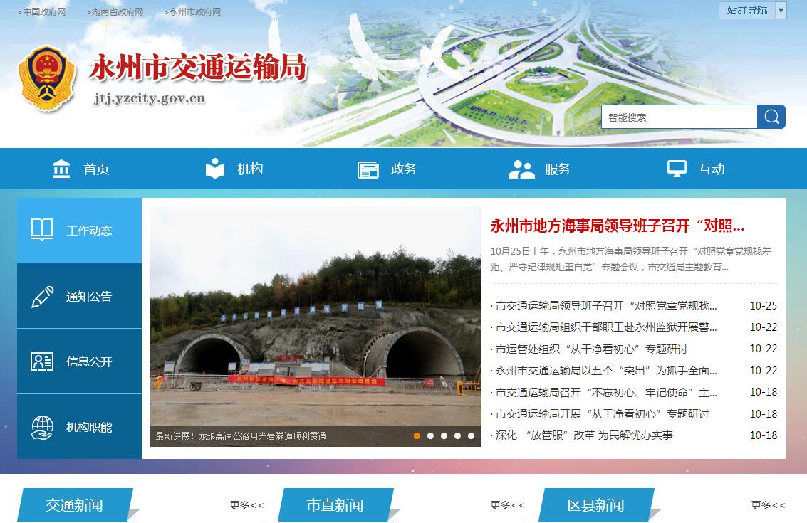 | 网站简介: 永州市交通运输局为永州市人民政府的工作部门,是全市交通运输工作的主管机构,担负着全市交通运输行业的领导和管理职能。其主要职责是:承担全市综合交通运输体系建设、规划和管理;组织拟定并监督实施全市公路和水路等交通行业规划和规范性文件;承担公路、水路运输市场和交通运输建设市场监管责任;负责中心城区城市公共客运交通的规划管理和服务;承担全市水上交通安全的监督管理;组织协调辖区内公路交通工程建设;负责提出公路、水路固定资产投资规模和方向、市级财政性资金安排建议;指导全市公路、水路行业安全生产和应急管理工作;制定全市交通运输行业科技措施、规划和规范并监督实施;指导交通运输行业开展对外交流合作和交通外经外贸工作。 |