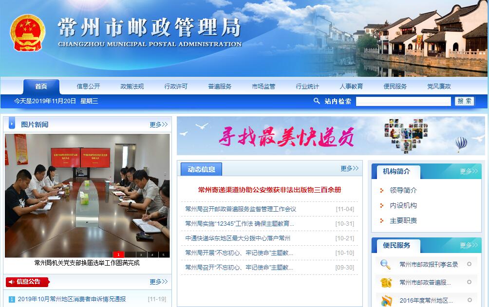 | 网站简介: 常州市邮政管理局主要职责:(一)贯彻执行国家邮政法律法规、方针政策和邮政服务标准。(二)研究拟订本地区邮政发展规划。(三)监督管理本地区邮政市场以及邮政普遍服务和机要通信等服务的实施。(四)负责行业安全生产监管、统计等工作。(五)保障邮政通信与信息安全。(六)承办上级邮政管理部门及地方人民政府交办的其他事项。 |
