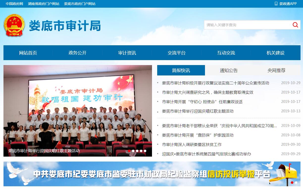 娄底市审计局组建于1983年,是市人民政府的组成单位。内设处室13个,二级机构2个,在职干部职工61人,离退休人员29人,其中局领导9名,机关审计业务人员30人,占在职人员的比例为54%;中共党员45人,具有大学本科以上学历38人,有中级专业技术职称40人,其中有高级专业技术职称3人。根据《中华人民共和国审计法》和《湖南省审计监督条例》规定,娄底市审计局履行以下主要职责:(一)主管全市审计工作。负责对全市财政收支和法律法规规定属于审计监督范围的财务收支的真实、合法和效益进行审计监督,维护全市财政经济秩序,提高财政资金使用效益,促进廉政建设,保障全市经济和社会健康发展。对审计、专项审计调查和核查社会审计机构相关审计报告的结果承担责任,并负有督促被审计单位整改的责任。(二)贯彻执行国家关于审计工作的方针、政策和法律法规,研究拟订我市审计工作规章制度,并监督执行。制定并组织实施全市审计工作年度审计计划。对直接审计、调查和核查的事项依法进行审计评价,做出审计决定或提出审计建议。(三)向市人民政府报告和向市人民政府有关部门通报审计情况,提出制定和完善有关政策法规、宏观调控措施以及管理体制、机制建设的建议。(四)向市人民政府提出年度市本级预算执行和其他财政收支情况的审计结果报告。受市人民政府委托向市人大常委会提出市本级预算执行情况和其他财政收支情况的审计工作报告、审计发现问题的纠正和处理结果报告。依法向社会公布审计结果。(五)直接审计下列事项,出具审计报告,在法定职权范围内做出审计决定或向有关主管机关提出处理处罚的建议:1、市本级财政预算执行情况和其他财政收支。2、各县市区人民政府预算执行情况、决算和其他财政收支。3、市直各部门、和接受财政拨款单位的财政、财务收支及资金使用效益。4、市属国有企业和金融机构、市属资本占控股或主导地位的企业和金融机构的资产、负债和损益情况。5、市人民政府部门管理的和其他单位受市人民政府委托管理的社会保障基金、社会捐赠资金以及其他有关基金、资金的财务收支。6、市人民政府投资和以市人民政府投资为主的建设项目的预算执行情况和决算。7、市人民政府接收的国际组织和外国政府援助、贷款项目以及赠款项目的财务收支。8、法律、法规规定应由市审计局审计的其他事项。(六)负责市领导干部经济责任审计领导小组办公室日常工作,按规定对市管党政领导干部及依法属于市审计局审计监督对象的其他单位主要负责人实施经济责任审计,协调各成员单位运用经济责任审计成果。指导全市经济责任审计工作。(七)组织实施对国家财经法律、法规、规章、政策和宏观调控措施执行情况、财政预算管理或国有资产管理使用等与国家财政收支有关的特定事项进行专项审计调查。(八)负责省审计厅授权的审计项目和专项审计调查项目的组织实施。(九)依法检查审计决定执行情况,督促纠正和处理审计发现的问题,依法办理被审计单位对审计决定提请行政复议、行政诉讼或市人民政府裁决中的有关事项。协助配合有关部门查处相关重大案件。(十)指导和监督内部审计工作,核查社会审计机构对依法属于审计监督对象的单位出具的相关审计报告。(十一)与县市区人民政府共同领导县市区审计机关。依法领导和监督下级审计机关的业务,组织下级审计机关实施专项审计或审计调查,纠正或责成纠正下级审计机关违反国家规定做出的审计决定。按照干部管理权限协同办理县市区审计机关负责人的任免事项。 (十二)组织审计市驻外非经营性机构的财务收支,依法通过适当方式组织审计市属企业和金融机构的境外资产、负债和损益。(十三)指导和推广信息技术在全市审计系统的应用,组织全市审计机关实施管理系统和现场审计系统的建设。组织审计专业培训。(十四)承办市人民政府交办的其他事项。