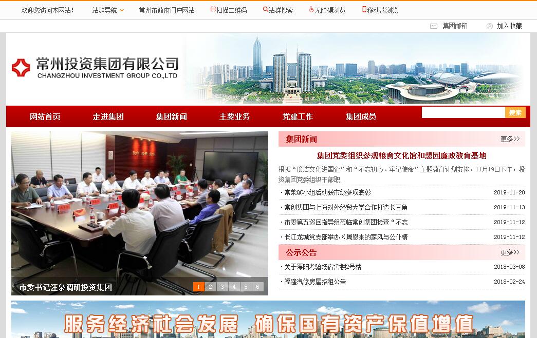 | 网站简介: 常州投资集团有限公司是经常州市人民政府批准设立,于2002年2月在整体接收常州市信托投资公司、常州市投资公司和常州常信集团基础上组建而成的国有独资公司,注册资本12亿人民币。集团直属于常州市政府,从事市政府授权范围内的国有资产投资、经营和管理。近年来,集团坚持突出主业、兼顾多元,保持持续稳健发展。截止2017年底,集团总资产222亿元,净资产118亿元,实现净利润6.07亿元。集团现有全资、控股企业29家,合营联营企业11家。业务范围涉及金融类金融、科教城国际创新基地、实业三大领域。未来,集团将紧扣常州经济社会发展战略,立足综合性产业投资和国有资本运作,创新拓展各类业务,培育壮大集团核心竞争力,努力打造以金融为龙头、以实业为基础、以资本经营为手段,集金融、实业、投资、基础设施建设于一体的现代化集团,为建设强富美高新常州作出积极贡献。 |