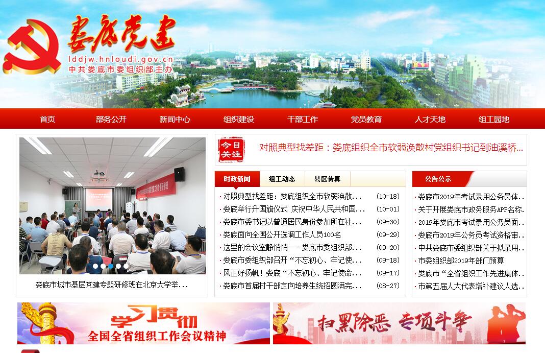 娄底党建网由中共娄底市委组织部主办。中共娄底市委组织部主要职责:(一)负责研究和指导党组织建设,制订加强党的工作制度、党内生活制度的规定和意见;组织协调有关部门对县市区和市委管理的企事业单位党委换届选举及单位党委(党组)民主生活会进行指导;研究指导党的基层组织建设以及党组袈的设置原则、隶属关系和活动内容、工作方式;研究、指导党员队伍建设,主管党员管理和发展工作,指导、协调党员教育工作;负责全市党内信息网络建设、党内统计和统计分析应用工作,为市委加强党员队伍建设提供决策参考;组织和开展新时期党的建设的理论研究;指导县市区委和市直单位领导班子的思想作风建设和民主生活会。(二)负责全市干部队伍建设的宏观管理,制订和参与制订组织、干部、人事工作的重要政策、规章、制度,并对重要经验进行总结推介。提出适应现代企业制度要求的国有企业领导班子和企业经营管理者队伍建设的意见和建议。 (三)提出县市区和市直部委办局以及其他列入市委管理的领导班子调整、配备的意见和建议;负责市委管理的干部的考察、任免、工资、待遇、出国(出境)、退(离)休审批手续的办理,负责市级领导班子换届选举和届中调整的有关工作;负责军队转业干部安置工作的宏观指导,团职转业干部的安置;负责办理市直部委办局组织人事(干部)科长、县市区委组织部正副部长、县市区纪委副书记的考察、任免手续;负责乡镇党政一把手职务任免的任前备案和宏观管理工作;负责全市领导干部公开选拔和宏观指导,承办副处以上干部公开选拔的具体工作;市直单位内部竞争上岗工作的宏观指导;负责援藏援疆的干部选派考核等有关工作;组织落实培养选拔县(处)级后备干部、妇女干部、少数民族干部、非中共党员干部,以及选调生工作;指导国家公务员制度的实施,负责全市党委、人大、政协、法院、检察院、群众团体和民主党派等机关参照执行国家公务员制度的宏观指导及有关具体工作。负责全市干部人事档案、干部统计工作的管理和指导。(四)负责干部监督工作的宏观指导,负责组织工作和干部工作的督促检查,及时向省委组织部和市委反映重要情况,对反映领导班子和领导干部的重要问题进行调查了解和督办;负责组织、协调县市区及市直单位主要领导干部的任期经济责任的审计,负责对副处以上党政领导干部和干部选拔任用工作进行监督,对有关监督制度的落实情况进行督查,对省委和市委管理的干部的历史遗留问题进行初审和审查。(五)制订干部教育工作的政策、规划;组织、协调省管、市管干部和中青年干部的培训;指导、协调、检查县市区和市直单位的干部教育工作,宏观指导党校建设。(六)贯彻落实党的知识分子工作的政策,牵头制订有关知识分子工作的规定,指导、协调、检查知识分子工作;组织部分专家和学术带头人开展有关活动。(七)负责归口单位的综合协调与指导工作。(八)承办市委和省委组织部交办的其他事项。