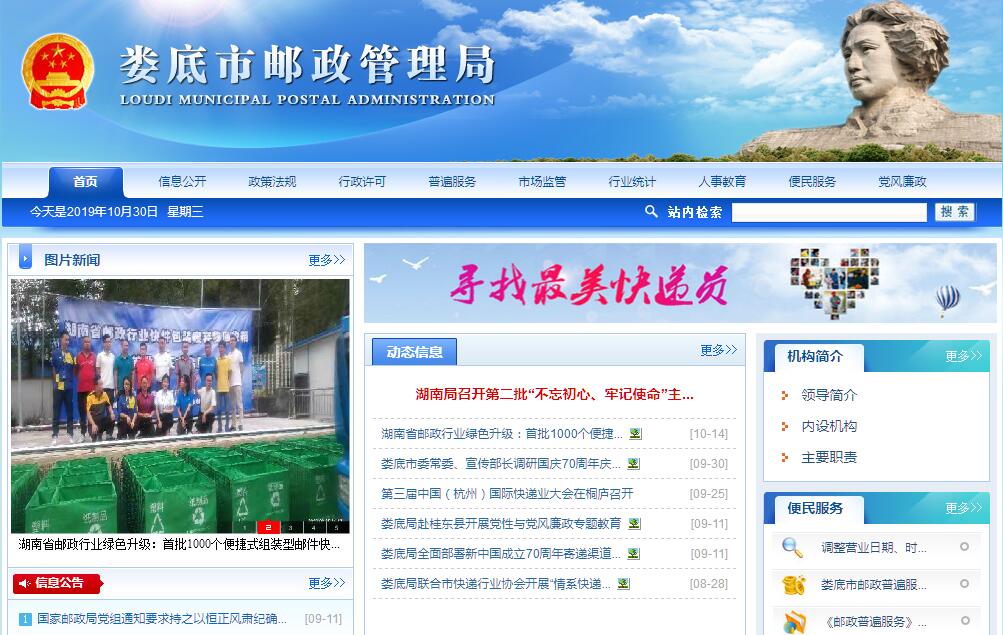 | 网站简介: 娄底市邮政管理局主要职责:一、贯彻执行国家邮政法律法规、方针政策和邮政服务标准。二、研究拟定本地区邮政发展规划。三、监督管理本地区邮政市场以及邮政普遍服务和机要通信等服务的实施。四、负责行业安全生产监管、统计等工作。五、保障邮政通信与信息安全。六、承办湖南省邮政管理局和娄底市委、市人民政府交办的其他事项。 |