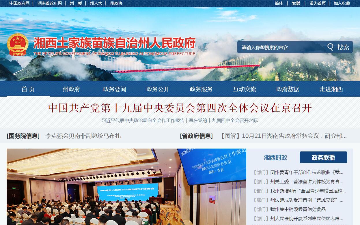 湘西土家族苗族自治州隶属湖南省,是全省唯一的少数民族自治州。位于湖南省西北部,介于东经109°10′~110°22.5′,北纬27°44.5′~29°38′之间,地处湘、鄂、黔、渝四省市交界处。1952年8月成立湘西苗族自治区,1955年改为湘西苗族自治州,1957年9月成立湘西土家族苗族自治州。管辖7县1市,面积15462平方公里。湘西州属亚热带季风湿润气候,具有明显的大陆性气候特征。2016年,常住人口263.6万人。其中城镇人口113.51万人,农村人口150.09万人,城镇化率43%;以土家族、苗族为主的少数民族占77.21%。2015年湘西州实现地区生产总值512亿元,比2014年增长9.2%。湘西州历史悠久,文化灿烂,辖区内有首批国家历史文化名城凤凰县,2015年入选首批国家全域旅游示范区,州内人文古迹众多,老司城及其周边有大量的自然及人文景观遗迹。湘西也是武陵文化的发源地之一。2018年,湘西州实现生产总值605.05亿元,增长6%。其中,第一产业增加值79.83亿元,增长3.6%;第二产业增加值171.64亿元,增长2%;第三产业增加值353.58亿元,增长8.9%。第一产业、第二产业、第三产业增加值占生产总值的比重分别为13.2%、28.4%、58.4%,其中工业增加值占生产总值比重为22%,第三产业比重较上年提高2.9个百分点。第一、二、三产业对经济增长贡献率分别为8.8%、10.5%、80.7%。全州人均生产总值22885元,增长5.7%。非公有制经济增加值413.4亿元,增长5.9%,占生产总值的比重为68.3%。高新技术产业增加值36.7亿元,下降7.7%。全州规模以上服务业营业收入38.58亿元,增长12.7%;实现利润总额2.33亿元,增长44%。2018年10月,获得“2018年国家森林城市”荣誉称号。