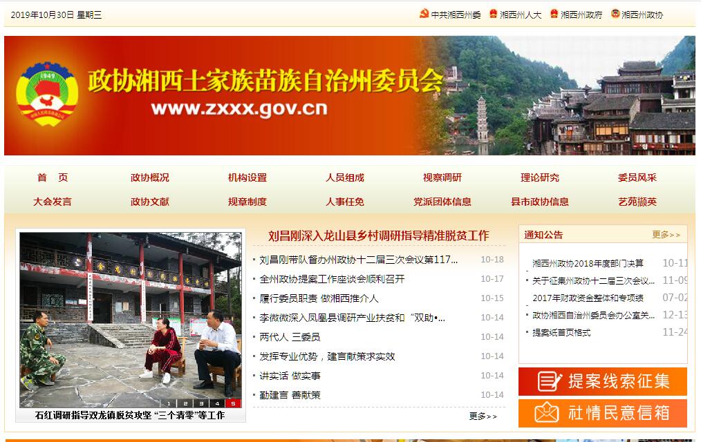 中国人民政治协商会议在湘西自治州的组织于1952年成立,其发展历经了三个阶段。第一阶段,1952年8月至1955年5月。1952年8月7日,成立湖南省湘西苗族自治区各界人民代表会议协商委员会(简称自治区协商委员会),在首届第一次会议上,选举产生了44名政协委员。第二阶段,1955年5月至1958年6月。1955年3月,湘西苗族自治区改称为湘西苗族自治州,同年5月,湖南省湘西苗族自治区各界人民代表会议协商委员会撤销,成立中国人民政治协商会议湖南省湘西苗族自治州委员会(简称自治州政协),22日至25日,召开了自治州政协第一届第一次会议,选举产生了49名政协委员。第三阶段,1958年6月至今。1957年9月,湘西土家族苗族自治州成立。次年6月成立中国人民政治协商会议湘西土家族苗族自治州委员会(简称州政协),10日至13日召开了州政协一届一次会议,选举产生了115名政协委员。至2013年,共选举产生了十一届中国人民政治协商会议湘西土家族苗族自治州委员会。本届政协现有委员331名,由16个界别组成。工作机构设办公室、研究室、提案委员会、经济科技联谊委员会、人口资源环境委员会、文教卫体委员会、民族宗教法制群团委员会和文史学习委员会,其中办公室内设秘书科、行政科、人事科、财务科、老干办(主任高配副处级)、委员联络办和机关车队,各专委会内设综合科,文史学习委员会另设正科级文史资料编辑部。州政协机关现有在职干部职工60名,其中副处级以上干部34名;机关离退休干部38名,其中副厅级以上干部19名。全州8县市政协共有在职干部职工167名,县市政协委员1495人。