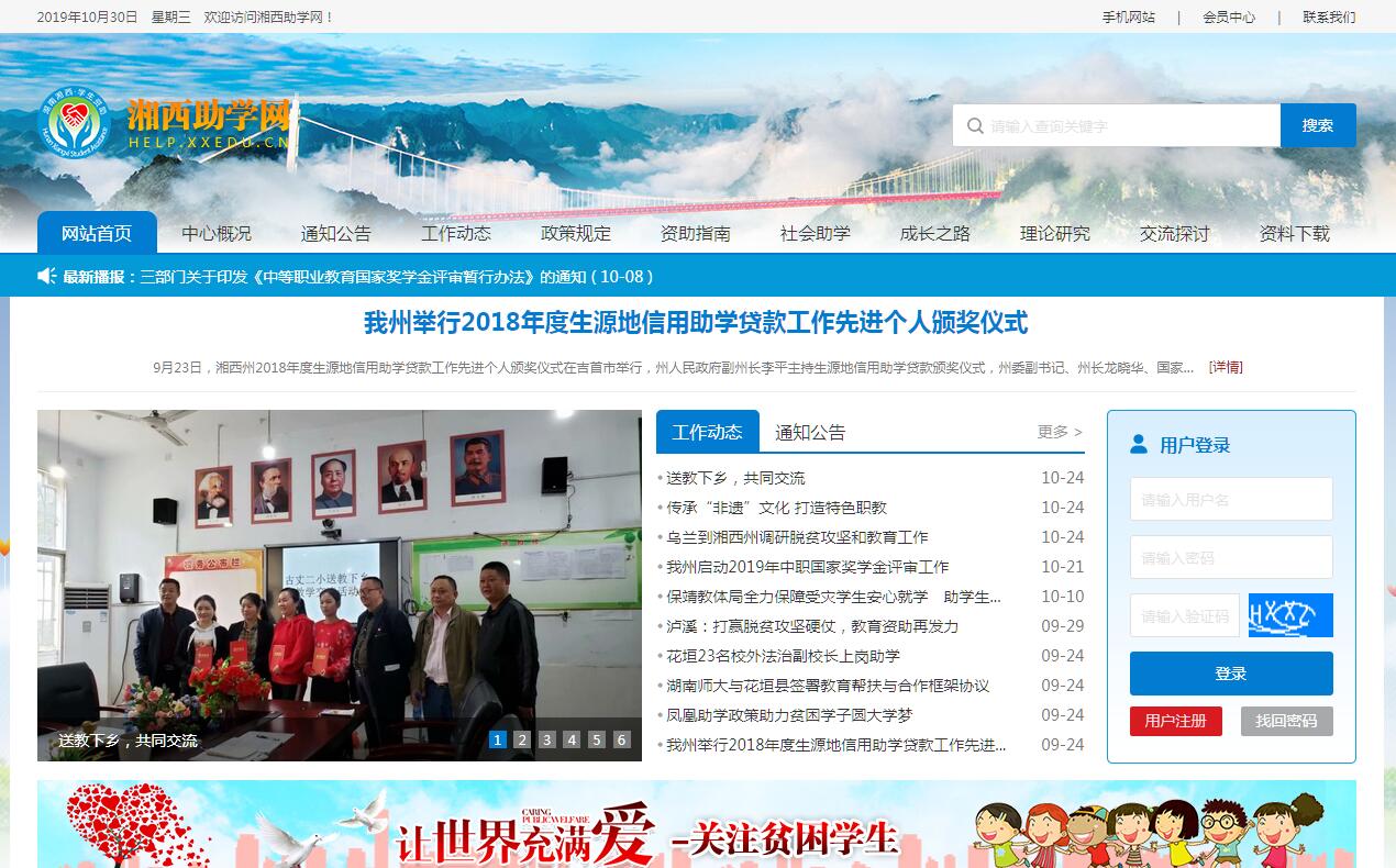 | 网站简介: 湘西助学网由湘西州学生资助管理中心主办。2004年,湘西自治州教育局设立了中小学救助受援捐赠中心。2008年,按照省教育厅的统一布署,湘西自治州学生资助管理中心成立,并通过州编委正式行文,加挂原已设立的州中小学救助受援捐赠中心牌子,实行两块牌子,一套人员。中心现有专职工作人员3人,办公条件完善。中心主要职责与任务:负责推动落实高等教育、中等职业教育、普通高中教育、义务教育和学前教育学生资助政策;指导县市开展学生资助工作;宣传推动生源地助学贷款工作;接受社会捐资助学。中心开发了湘西助学网,并建有湘西助学微博、微信公共平台,广泛宣传国家资助政策,募集社会资金开展捐资助学活动。 |