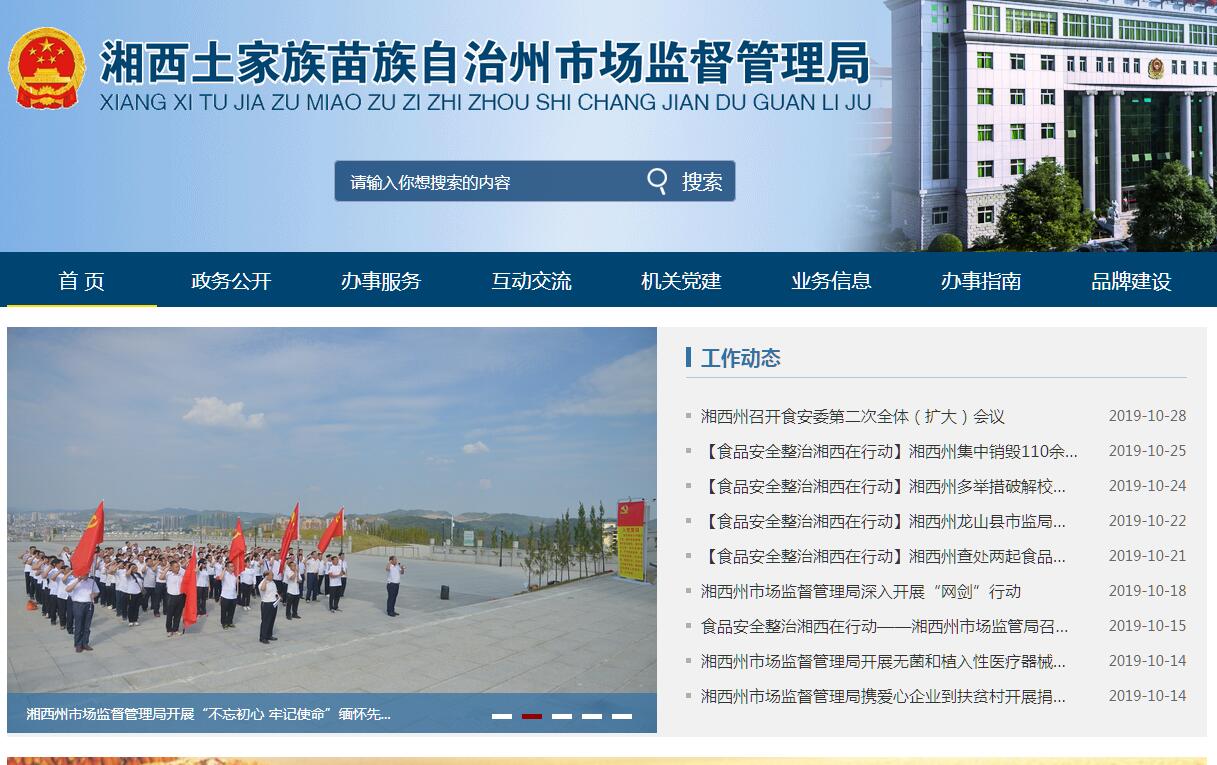 湘西州市场监督管理局贯彻落实党中央关于市场监督管理工作的方针政策和决策部署,全面落实州委关于市场监督管理工作的部署要求,在履行职责过程中坚持和加强党对市场监督管理工作的集中统一领导。其主要职责是:(一)负责市场综合监督管理。协助做好市场监督管理有关立法工作,拟订并组织实施有关规划,规范和维护市场秩序,营造诚实守信、公平竞争的市场环境。(二)负责市场主体统一登记注册。指导各类企业、农民专业合作社和从事经营活动的单位、个体工商户,以及外国(地区)企业常驻代表机构等市场主体的登记注册工作。建立市场主体信息公示和共享机制,依法公示和共享有关信息,加强信用监管,推动市场主体信用体系建设。(三)负责组织和指导市场监管综合执法工作。指导全州市场监管综合执法队伍整合和建设,推动实行统一的市场监管。组织查处重大违法案件。规范市场监管行政执法行为。(四)负责反垄断统一执法。统筹推进竞争政策实施,指导实施公平竞争审查制度。依法对经营者集中行为进行反垄断审查,根据授权负责垄断协议、滥用市场支配地位和滥用行政权力排除、限制竞争等反垄断执法工作。指导企业在国外的反垄断应诉工作。(五)负责监督管理市场秩序。依法监督管理市场交易,网络商品交易及有关服务的行为。组织指导查处价格收费违法违规、不正当竞争、违法直销、传销、侵犯商标专利地理标志等知识产权和制售假冒伪劣行为。指导广告业发展,监督管理广告活动。指导查处无照生产经营和相关无证生产经营行为。(六)负责宏观质量管理。拟订推进质量强州战略的政策措施并组织实施。统筹全州质量基础设施建设与应用,会同有关部门组织实施重大工程设备质量监理制度,组织质量事故调查,实施缺陷产品召回制度,监督管理产品防伪工作。(七)负责产品质量安全监督管理。管理产品质量安全风险监控、全州监督抽查工作。落实质量分级制度、质量安全追溯制度。负责工业产品生产许可证监督管理工作。负责纤维质量监督工作。(八)负责特种设备安全监督管理。综合管理特种设备安全监察、监督工作,监督检查高耗能特种设备节能标准和锅炉环境保护标准的执行情况。按规定权限组织调查处理特种设备事故并进行统计分析。(九)负责食品安全监督管理综合协调。组织制定食品安全有关政策并组织实施。负责食品安全应急体系建设,组织指导食品安全事件应急处置和调查处理工作。建立健全食品安全重要信息直报制度。承担州食品安全委员会日常工作。(十)负责食品安全监督管理。建立覆盖食品生产、流通、消费全过程的监督检查制度和隐患排查治理机制并组织实施,防范区域性、系统性食品安全风险。推动建立食品生产经营者落实主体责任的机制,健全食品安全追溯体系。组织开展食品安全监督抽检、风险监测、检查处置和风险预警、风险交流工作。组织实施特殊食品备案和监督管理。负责食盐质量安全管理与监督、盐政执法和监督。(十一)负责药品(含中药、民族药、下同)、医疗器械和化妆品安全监督管理。贯彻执行国家药品、医疗器械和化妆品监督管理法律、法规、规章,组织起草相关地方性法规、政府规章草案,拟订政策规划并监督实施。研究拟订鼓励药品、医疗器械和化妆品新技术新产品的管理与服务政策。(十二)负责职责范围内的药品、医疗器械和化妆品标准管理。监督实施药品、医疗器械、化妆品标准和分类管理制度,执行地方中药材标准、中药饮片炮制规范,配合有关部门实施国家基本药物制度。(十三)负责权限内药品、医疗器械的行政许可、备案和化妆品备案工作。负责土家药、苗药饮片备案。(十四)负责药品、医疗器械和化妆品质量管理。监督实施药品研制、生产、经营质量管理规范,监督实施医疗器械研制、生产质量管理规范,监督实施化妆品生产卫生标准和技术规范。(十五)组织开展药品不良反应、医疗器械不良事件和化妆品的不良反应监测工作。依法承担药品、医疗器械和化妆品安全应急管理工作。(十六)负责组织实施药品、医疗器械和化妆品监督检查。制定检查制度,依法查处药品、医疗器械和化妆品生产环节违法行为,以及药品批发、零售连锁总部、互联网销售第三方平台违法行为。依职责组织指导查处其他环节违法行为。负责指导市县监督管理部门承担的药品、医疗器械、化妆品有关监督管理工作。(十七)负责统一管理计量工作。推行法定计量单位和国家计量制度,依职责管理计量器具及量值传递和比对工作。规范、监督商品量和市场计量行为。(十八)负责统一管理标准化工作。贯彻国家标准化工作的法律、法规、方针和政策。拟定地方标准化工作规划、计划。指导有关行政主管部门的标准化工作。组织重要标准的实施。对标准制定进行指导和监督、对标准的实施进行监督检查。依法对辖区内的团体标准和企业标准进行监督。依法承担我州地方标准的立项、编号和发布工作,指导开展标准化试点示范工作。推进国标标准化工作。(十九)负责检验检测监督管理工作。规范检验检测市场,完善检验检测体系,指导协调检验检测行业发展。(二十)负责监督管理和综合协调全州认证认可与合格评定工作。依法监督管理全州认证认可和合格评定有关活