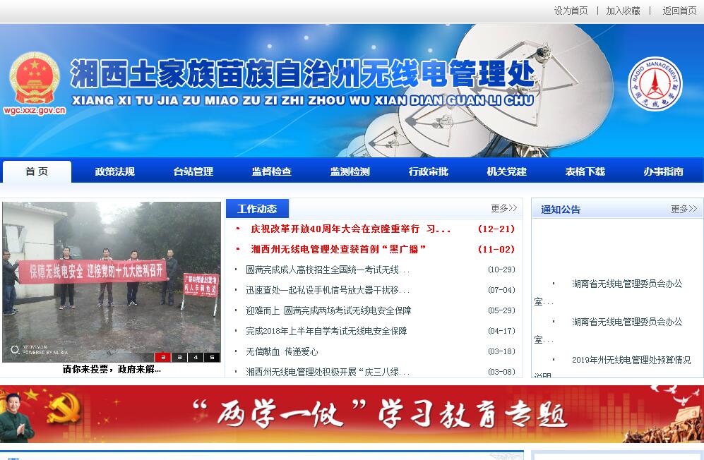 | 网站简介: 湘西州无线电管理处主要职责:1、贯彻执行国家和省无线电管理的方针、政策、法规、规章及有关实施细则;2、协调处理本行政区内无线电管理方面的事业;3、根据权限审查无线电台(站)的设置、布局和台址,指配无线电台(站)的频率,核发无线电台执照;4、对辖区内研制、生产、进口、销售无线电发射设备实施管理,核准并发放无线电发射设备销售许可证和维修许可证;5、负责对辖区内各类无线电发射设备的检测工作;6、负责辖区内无线电管理行政执法的受理、调查、结案等工作,查处非法设置、使用的无线电台;7、负责辖区内电磁环境的监测,协调处理无线电干扰投诉,查找无线电干扰源;8、负责本市无线电频率占用费的征收;9、负责平时、战时无线电空中管制;10、承办省无委办和当地政府办交办的其它工作。 |