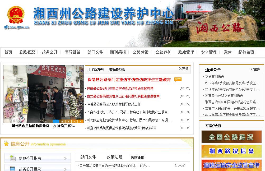 湘西州公路建设养护中心主要职责:一、贯彻执行国家关于公路工作的方针、政策和法律、法规,参与地方有关公路建设、养护与管理政策的制定和调整。二、按公路发展规划对国省干线公路进行改建、扩建或新建。三、认真贯彻落实国家有关公路养护法律、法规、政策和技术规范;负责公路大中修、危桥改造、安保工程、水毁等公路工程建设和管理工作;四、指导、监督国省干线公路小修保养,落实公路养护质量检查及随即抽查;负责管养公路标志的制作安装;五、负责全州农村公路小修保养生产管理,督促、检查、考核各县市农村公路养护生产的完成情况;制定和完善养护生产运行机制和管理模式的改革方案、管理制度和检查考核办法;六、负责编制国省干线和农村公路年度管养计划,搞好管养项目的管理和核算,检查、督促计划的执行,负责水毁、危桥、安保工程计划的上报和项目造价审查工作。七、负责公路路政管理,依法查处路政案件,纠正侵害、损坏公路及公路设施等违法行为,维护路产路权。八、依法治理车辆超限超载运输,指导、监督县市地方公路部门路政管理和“治超”工作。九、组织国省干线公路交通量调查和公路路况普查。十、负责引导、推广公路建设、养护、管理新技术、新工艺、新制度。十一、承办州人民政府和州交通局交办的其他事项。