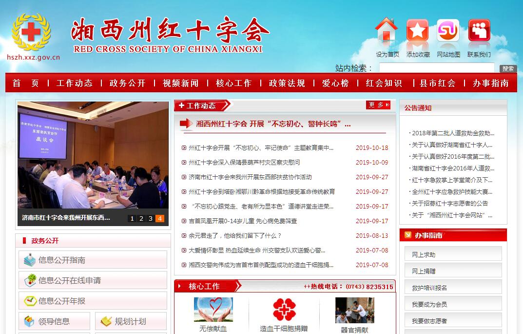湘西州红十字会主要职责:1、宣传和执行《中华人民共和国红十字会法》和《中华人民共和国红十字标志使用办法》。2、开展备灾救灾工作。制定应急预案,建立应急救援队伍;储备救灾物资建设和管理备灾救灾设施;在自然灾害和突发事件中,开展救护和救助工作;根据自然灾害和突发事件的具体情况,由总会向国内外发出呼吁,依法接受国内外组织和个人的捐赠;地方各级红十字会在辖区内发出呼吁,依法接受国内外组织和个人的捐赠;及时向灾区群众和受难者提供急需的人道援助,参与灾后重建;3、开展应急救护和防病知识的宣传、普及、培训;在机关、企事业单位、社区、农村、学校和易发生意外伤害的行业和人群中开展初级卫生救护培训,组织群众参加意外伤害和自然灾害的现场救护;提高应急条件下的应急救助能力和水平。4、开展无偿献血的宣传推动工作,与州人民政府共同对先进单位和个人进行表彰奖励;5、开展社会救助及相关服务工作。对易受损人群进行救助,为困难群众提供服务;在社区、农村中建立红十字服务站,开展服务群众、宣传培训、募捐救助等活动;开展帮助寻找失散亲人、重建家庭联系等其他人道服务工作;6、依法开展和推动遗体、器官(组织)捐献工作;开展艾滋病预防控制宣传和教育、关心爱护艾滋病病毒感染者、患者及其他人道救助工作;7、开展有益于青少年身心健康的红十字青少年活动;8、开展红十字志愿服务活动;9、依法开展募捐活动;在公共场所设置红十字募捐箱并进行管理;10、兴办符合红十字会宗旨的社会福利事业;11、完成州人民政府委托事宜。
