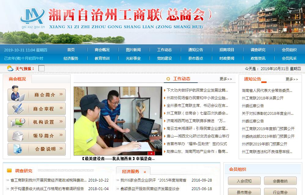 | 网站简介: 湘西自治州工商联成立于1988年2月13日,湘西自治州总商会成立于1993年5月20日。系正处级机构,内设办公室、商务部、会员部、非公党建部,现有编制6个,实有在职干部6人。下设二级机构一个,为会员服务中心,,成立于2013年8月,现有编制5个,有在职干部5人。截至2014年底,全州工商联共有会员6272个,其中团体会员97个,个人会员5472个,企业会员701个。州工商联执委会成员98人,其中驻会主席、副主席5人,兼职副主席12人,兼职副会长11人,常委28人,执委42人。州工商联有直属商会5个、直属会员企业13家。截止2014年底,全州注册登记私营企业8110户,注册金244.2亿元;个体工商户登记在册59887户,资本数额24.73亿元;全州第二、三产业从业人员95.28万人,非公有制经济从业人员83.47万人,占二、三产业从业人员的87.6%; 2014年,全州非公经济实现增加值304亿元,增长8.5%,占地区生产总值的66.5%,比2013年增长0.4个百分点。 |
