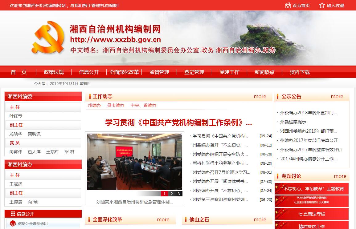 湘西土家族苗族自治州机构编制委员会办公室是湘西土家族苗族自治州机构编制委员会的常设办事机构,在湘西土家族苗族自治州机构编制委员会领导下负责全州行政管理体制和机构改革以及机构编制的日常管理工作,既是州委的机构,又是州政府的机构,是州委的八个工作机构之一。湘西土家族苗族自治州机构编制委员会办公室的主要职责是:一、贯彻执行党和国家关于行政管理体制改革和机构改革及机构编制工作的方针、政策和法规,拟定我州行政管理体制改革和机构改革及机构编制工作的条例和政策,统一管理全州各级党政机关和人大、政协、法院、检察院机关以及各民主党派、人民团体机关的机构编制工作,检查监督各级行政管理体制改革和机构改革方案以及机构编制的执行情况。二、研究拟定全州行政管理体制改革与机构改革方案及有关规定;审核州直各部门和县市党政机构改革方案;指导、协调各级行政管理体制改革和机构改革以及机构编制管理工作。三、协调州委、州政府各部门的职能配置及其调整;协调州委各部门之间、州政府各部门之间、州委各部门与州政府各部门之间以及各部门与县市之间的职责分工。四、负责审批全州县市、乡镇事业单位全额拨款事业编制总额的核定、增减;全州副处级以上(含副处级)机构的内设机构、州直和县市正副科级机构的撤销、合并或变更名称、加挂牌子;州直各单位之间的编制(不含后勤事业编制)划转、公务员法管理单位(含参照公务员法管理单位)的后勤事业编制转换为用工指标;州直医疗卫生、学校等事业单位由省统一核定事业编制的控制数增减;省委、省政府和省机构编制部门明确的机构编制事项。五、研究拟定全州事业单位管理体制和机构改革方案,负责事业单位机构编制管理工作;制订全州事业单位机构编制标准;指导、协调各级各类事业单位管理体制改革和机构编制管理工作。六、贯彻执行国家有关事业单位登记管理的法律、法规、规章,拟定全州事业单位登记管理的条例和政策,并组织实施;负责本级登记管辖范围内事业单位的登记、年审和监督管理工作;负责事业单位登记管理的行政复议、行政诉讼应诉工作,检查监督和指导协调全州事业单位登记管理工作。七、负责机构改革和机构编制管理有关信息的采集和情况的综合,负责机构编制统计工作。八、参与全州大中专毕业生、退伍军人就业指导和军转干部安置工作。九、承办州委、州人民政府和州机构编制委员会交办的其他事项。
