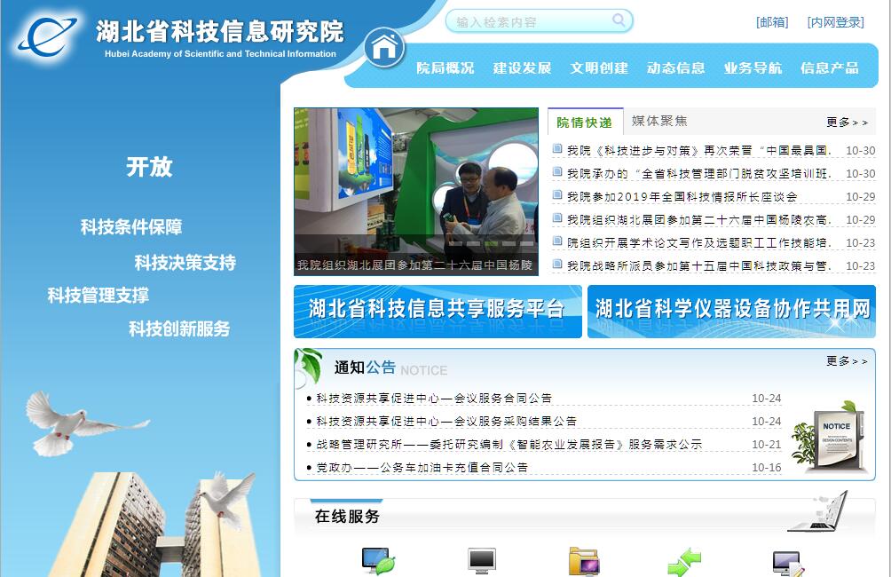 春华秋实六十载,创新发展再扬帆。在社会各界的关心下,我院已经走过了六十多年的历程,院党政班子及全体员工向长期关心和支持我院发展的各级领导、各级部门、社会各界以及行业同仁表示衷心的感谢!我院的前身——湖北省科学技术情报研究所成立于1958年9月,根据国务院统一规划部署,承担建设全国区域科技情报中心的任务。2001年,更名为湖北省科技信息研究院,并入了《科技进步与对策》杂志社,加挂了湖北省科技情报局、湖北省生产力促进中心两个牌子。经过几代情报人半个世纪的奋斗拼搏,我院己经成为全国规模较大、事业发展水平靠前的省级公益研究型科技信息及科技创新服务机构。60多年来,我们勇当科技、经济、社会发展的“尖兵”“耳目”“参谋”,积极履行“科技决策支持、科技条件共享、科技管理支撑、科技创新服务”四大职能,构建了一套与时俱进的业务支撑系统。科技决策支持方面聚焦科技促进经济社会发展战略需求,履行“政府智囊、产业顾问”使命,面向政府决策、区域创新、产业发展,开展科技政策、科技发展战略、科技发展规划、产业发展规划、区域发展规划等方面的情报研究与咨询服务,已成为以引领性研究为特征的全省创新驱动发展的“科技智库”。科技条件共享方面承担着湖北省科技信息共享服务平台、华中地区暨湖北省科学仪器设备协作共用网两大科技条件保障平台的开发、运行、维护和服务工作,已成为湖北省科技信息支撑平台和数据交换中心、科研仪器协作共用平台和社会服务枢纽。科技管理支撑方面承担着科技成果查新咨询、科技项目评估与评审、科技统计与分析、科技档案管理、科技报告管理、科技计划项目管理、知识产权评议、科技宣传等省科技管理支撑服务工作,是全省科技管理工作科学有序进行、促进湖北经济社会持续健康发展的重要保障。科技创新服务方面承担着全省生产力促进服务工作,重点建设了农村信息化、制造业信息化、电子政务信息化等领域的服务体系,以及科技人才培训、创新方法推广应用、科技传媒等业务,是推动全省主要行业领域信息化建设和服务全省科技创新的重要力量。60多年来,我院紧抓科技信息事业的灵魂,加强事业文化生态构建,凝练了一套反映时代特征、单位特点,能够激发全院职工奋发有为、开拓创新的特色事业文化体系。全新的事业文化已经成为我院各项事业不断取得新进步、文明建设不断获得新突破的重要法宝。60多年来,我们坚持求实创新、改革发展,完善了一套“激励放活与约束管住”并重的管理体制。在全国同行中率先推行事业集团管理模式,对院属业务部门实行模拟独立法人单位运营机制;率先全面推行岗位聘用制度,配套创立全新的岗位薪酬体系;率先自主构建内部保障体系。国家部委及省的有关领导称我院是全国科技信息机构改革发展的排头兵,是全省科研院所改革发展的一面旗帜。60多年来,我们高度重视事业的持续发展,建设了一支“爱院、敬业、诚信、有为”的职工队伍。全院现有各类人员200余人,其中博硕士学历人员100余人,在职人员中专业技术人员占90%以上,高中级专业技术人员的比例达到80%以上。拥有省劳动模范、省政府专项津贴专家、省新世纪高层次人才工程人选专家、省优秀青年骨干、二三级专业技术岗位正高级专家等10余人。60多年来,我们恪守社会公益型事业单位的性质和职责,开创了一个崭新的发展局面。我们围绕中心工作,提供公益服务,社会效益不断增强、国有资产快速增值、经济运行良性发展,正在形成以“湖北科技信息园”为基地、湖北科教大厦为窗口的事业持续发展的空间格局。60多年的奋斗,60多年的辉煌。先后被中共中央宣传部、国家科技部、中国科协授予“全国科普工作先进集体”,被中华全国总工会授予“全国五一劳动奖状”,被全国妇联授予“巾帼文明示范岗”,被中国教科文卫体工会授予“模范职工之家”,连续被省委省政府授予“最佳文明单位”,被省直机关工委表彰为“党建工作先进单位”,被省委人才工作领导小组授予“湖北省人才工作十强院所”,被省总工会授予“工人先锋号”等荣誉。回首六十载,我们豪情满怀;面向新时代,我们激情澎湃。作为信息和知识的挖掘者、集成者、创造者,我们将继续坚持改革,勇于创新,提升能力,优化服务,为实现我院“行业一流、国内知名、国际有影响的信息产品研发生产服务机构”发展目标再攀高峰,为建设创新型湖北、实现中部崛起的战略目标再创佳绩!