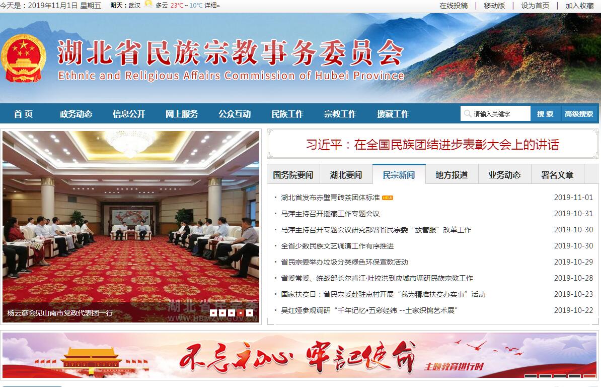 湖北省民族宗教事务委员会归口省委统战部领导,是主管全省民族、宗教事务的省政府组成部门。其主要职责是:(一)贯彻执行党和国家关于民族宗教工作的方针、政策;组织开展民族宗教理论、政策和重大问题的调查研究,提出相关政策性建议和意见。(二)负责拟定民族宗教事务的地方性法律法规草案及规章,研究制定民族宗教工作相关政策措施,并推动民族宗教事务法律法规和政策的宣传教育、贯彻落实;负责对民族宗教事务法律法规和政策贯彻执行情况进行督促检查;指导实施和完善民族区域自治制度建设。(三)负责协调推动有关部门履行民族宗教工作相关职责,推进民族宗教事务法治化、社会化管理工作;对全省民族宗教工作进行业务指导。(四)研究提出协调民族、宗教关系的工作建议,协调处理民族、宗教关系中的重大事项和涉及民族宗教因素的矛盾纠纷,推进实施民族宗教事务服务管理体系建设,组织开展民族团结进步创建及表彰活动,保障少数民族和宗教界合法权益,维护民族宗教领域和谐稳定。(五)负责拟订少数民族事业发展专项规划,监督检查规划实施情况,参与拟订少数民族和民族地区经济社会相关领域的发展规划,促进建立和完善少数民族事业发展综合评价监测体系;指导城市民族工作,协调城市民族关系;指导散居少数民族和民族乡工作;协调指导省辖民族自治地方重大庆典活动。(六)研究分析少数民族和民族地区经济、社会事业发展方面的问题并提出特殊政策建议,协调或配合有关部门处理相关事宜;参与协调民族地区对口支援、扶贫开发和民族贸易、民族特需用品生产等工作;参与推进少数民族文化、教育、科技、体育、旅游、广播影视、新闻出版等事业发展。(七)依法履行宗教事务管理职责,保护公民宗教信仰自由和正常的宗教活动;指导地方政府宗教事务部门依法管理宗教事务,治理宗教领域突出问题,防范利用宗教进行的非法、违法活动,抵御境外利用宗教进行的渗透活动;配合有关部门做好防范和处理邪教工作。(八)指导宗教团体依法依章开展活动,支持宗教团体加强自身建设,帮助宗教团体办好宗教院校,推动宗教团体在宗教界开展爱国主义、社会主义、拥护祖国统一和民族团结的自我教育;办理宗教团体需由政府解决或协调的有关事务。(九)参与拟订全省少数民族人才队伍、宗教工作干部队伍建设规划,研究提出少数民族和民族地区干部队伍建设政策建议;联系少数民族干部和宗教界代表人士;负责培训基层民族宗教工作干部,协助有关部门做好全省少数民族干部和宗教界代表人士的教育培养和推荐安排工作。(十)会同外事主管部门负责全省民族宗教方面的外事归口管理工作,组织协调民族宗教工作领域有关对外和对港澳台的交往、交流与合作,参与涉及民族宗教事务的对外宣传工作。(十一)承担湖北对口支援西藏的有关工作。(十二)承办上级交办的其他事项。