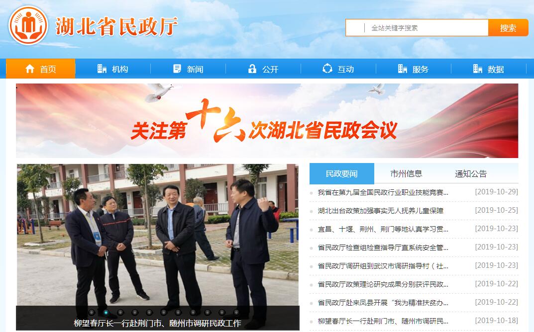 湖北省民政厅主要职责:(一)起草全省民政事业发展有关地方性法规、省政府规章草案。拟订政策和规划并组织实施。(二)拟订社会团体、基金会、社会服务机构等社会组织登记和监督管理实施办法并组织实施,依法对社会组织进行登记管理和执法监督。(三)拟订社会救助政策、标准,统筹社会救助体系建设。负责城乡居民最低生活保障、特困人员救助供养、临时救助、生活无着流浪乞讨人员救助管理工作。(四)拟订城乡基层群众自治建设和社区治理政策措施,指导城乡社区治理体系和治理能力建设,提出加强和改进城乡基层政权建设的建议,推动基层民主政治建设。(五)拟订行政区划、行政区域界线管理和地名管理政策措施、标准。负责报省政府审批的行政区划设立、命名、变更和政府驻地迁移审核工作。组织、指导乡级以上行政区域界线的勘定和管理工作。负责全省地名管理工作。(六)拟订婚姻管理政策并组织实施,推进婚俗改革。(七)拟订殡葬管理政策、服务规范并组织实施,推进殡葬改革。(八)统筹推进、督促指导、监督管理全省养老服务工作。拟订全省养老服务体系建设规划、政策、标准并组织实施。承担老年人福利和特殊困难老年人救助工作。(九)拟订残疾人权益保护政策,统筹推进残疾人福利制度建设和康复辅助器具产业发展。(十)拟订孤弃儿童保障、儿童收养、儿童救助保护政策、标准,牵头负责农村留守儿童关爱服务体系和困境儿童保障制度建设。(十一)组织拟订促进慈善事业发展的政策,指导社会捐助工作。(十二)拟订社会工作、志愿服务政策和标准。会同有关部门推进社会工作人才队伍建设和志愿者队伍建设。(十三)完成上级交办的其他任务。