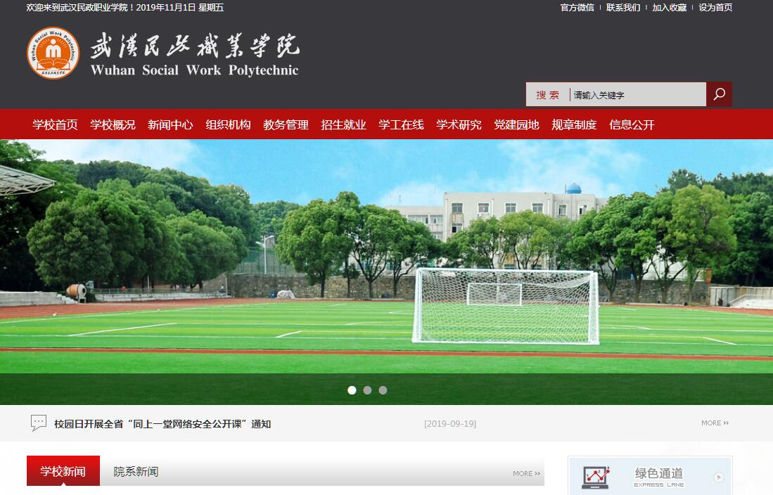 武汉民政职业学院创建于1986年,2004年4月由湖北省人民政府批准、教育部备案、升格为高等职业学院。学校隶属于湖北省民政厅,是湖北民政行业唯一的公办全日制普通高等职业学院。学校被民政部确立为社会工作和养老服务人才培训中心和“养老护理员”职业技能鉴定培训基地,并当选为中国养老产教联盟理事会主席团成员单位;是“湖北省殡葬事业促进会会长单位”;被省编办确定为“湖北省复员退伍军人职业教育和技能培训指导中心”、“湖北省民政干部培训中心”。学校地处武汉中心城区,校园毗邻“武汉•中国光谷”,坐拥伏虎山,俯瞰南湖,树木葱郁,建筑格局错落有致,被评为“园林式学校”。学校占地面积21万余平方米,校舍面积10万余平方米,固定资产总值1.6亿元,教学仪器设备总值1600余万元。学校现有教职工近200人,其中高级职称占专任教师的25%,研究生以上学历教师占专任教师的63%,“双师型”教师占专任教师的66%;拥有3名楚天技能名师和一批来自其他高校或行业的客座教授和企业的技术技能专家。学校坚持以立德树人为根本,以服务发展为宗旨,以促进就业为导向;坚持“崇德、强能、仁和、笃行”校训精神,以立足民政、面向社会、服务区域为办学定位;坚持以人为本、质量立校、特色兴校为治校方针,坚持学历教育与职业技能培训并重的办学模式,以培养高素质技术技能人才为己任,致力于“建行业一流,创特色名校”的公共管理与服务类职业院校。学校主要教育形式为全日制学历教育,学历教育以专科层次高等职业教育为主,现设四个二级学院,开办专业19个,面向全国15个省份招生,在校学生近4000人。学校校企合作广,建有央财支持的国家级实训基地、省级实训基地及稳固的校内外实习实训基地百余家。学校根据社会需要,开展继续教育和职业技能培训。学校依法颁发学历证书和职业资格证书。学校积极推动国际化人才培养,经湖北省教育厅批准,于2019年起与澳大利亚悉尼国际管理学院合作举办“专本衔接”教育,引进境外优质资源,联合开展职业技术教育,提升学生国际竞争力。学校荣获湖北省省直机关“文明单位”、省直机关“先进基层党组织”、省直机关“五好关工委”、武汉市社会治安综合治理“先进单位”、武汉市公安局“平安校园”建设优秀单位等荣誉称号。