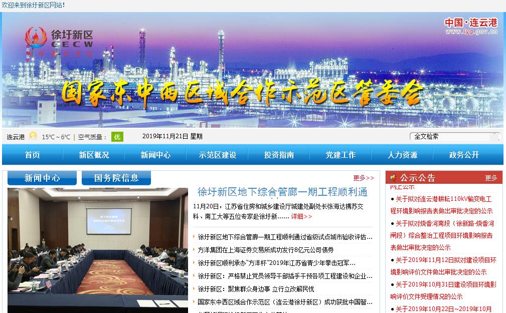 | 网站简介: 徐圩新区是国务院《江苏沿海地区发展规划》确定的重点开发区域,是国务院批准设立的国家东中西区域合作示范区的先导区,是国家“一带一路”交汇点建设产业合作的重要载体,是连云港市委市政府“十三五”规划确定的发展新型临港产业的核心区。新区将依托陆桥经济带,服务中西部,面向东北亚,建成服务中西部地区对外开放的重要门户、东中西产业合作示范基地、区域合作体制机制创新试验区。徐圩新区总规划面积约467平方公里,其中,徐圩港区74平方公里,临港产业区153平方公里,非常适宜布局和发展临港大工业。按照“生态、智能、融合、示范”的发展理念,新区主要发展石化、先进装备制造、节能环保和现代港口物流等主导产业,重点打造世界一流石化产业基地、国家生态工业示范园区、智能化新区,努力发展成为江苏沿海新的经济增长级。按照国家和省有关规划要求,新区把培育和发展新型临港重大产业、打造世界级石化产业基地作为主要任务。位于徐圩新区的连云港石化产业基地,是中国政府确定的全国七大石化产业基地之一。 |