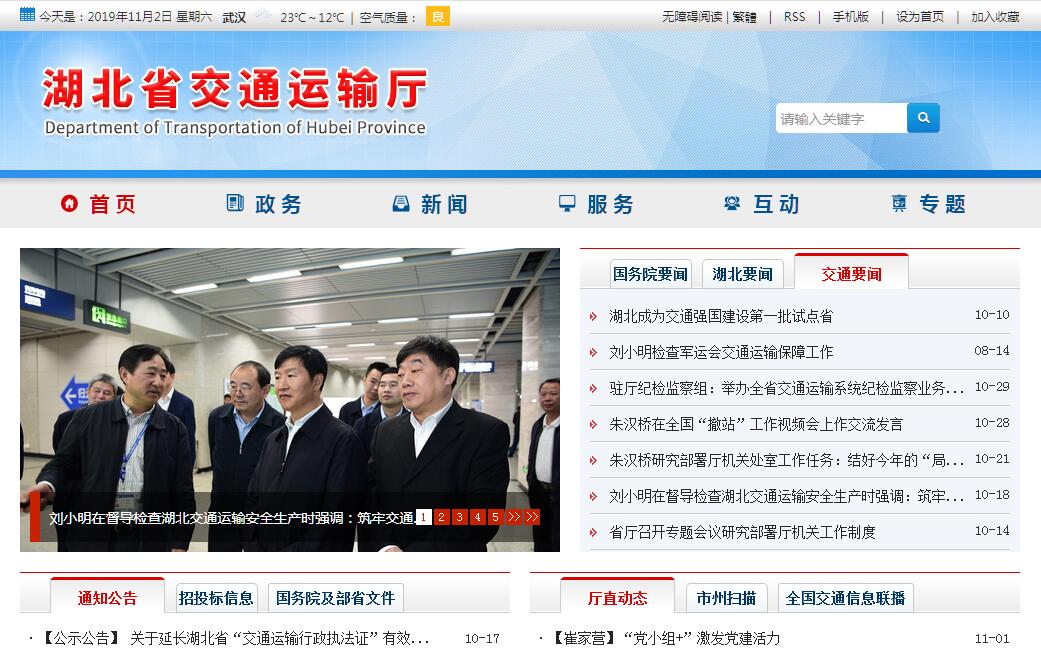 湖北省交通运输厅主要职责:(一)组织拟订地方性交通运输发展战略、产业政策和法规、省政府规章,指导全省交通运输行政执法和行业有关体制改革工作。(二)负责全省交通运输行业管理,承担协调服务民用航空、铁路、邮政等工作,承担涉及全省综合运输体系的规划协调工作,承担交通运输行业统计工作。(三)拟订全省公路、水路等行业发展规划、政策和标准并监督实施。参与拟订物流业发展战略和规划,拟订有关政策和标准并监督实施。(四)负责全省道路、水路运输市场监管,制定有关政策、准入制度、技术标准和运营规范并监督实施。指导全省城乡客运及有关设施的规划和管理工作,负责地方水上交通安全的监督管理。(五)负责全省公路、水路建设和养护市场监管。制定公路、水路工程建设和养护相关政策、制度和技术标准并监督实施。组织协调公路、水路有关重点工程建设和工程质量、安全生产监督管理工作。(六)拟订全省公路、水路固定资产投资规模和建设项目,编制年度计划和省财政性资金预算意见,按省政府规定权限审查、审批交通固定资产投资项目。组织协调全省交通规费征收、使用的监督管理工作。(七)指导全省公路、水路运输应急管理工作,指导重点干线公路网的运行监测,负责全省高速公路集中统一管理,承担国防动员和交通战备有关工作。(八)指导全省交通运输信息化建设,指导全省公路、水路行业科技、环保、节能减排工作。(九)负责全省公路、水路国际合作与外事工作,开展与港澳台地区的交流与合作。(十)为大企业提供"直通车"服务。(十一)划入原省农业厅的渔船检验和监督管理职责。(十二)省公路管理局、省高速公路管理局、省道路运输管理局、省港航管理局承担的除行政执法职责外的行政职责回归省交通运输厅。(十三)增加负责推进省综合交通运输体系建设,统筹协调铁路、公路、水路、民航以及邮政行业发展,建立与综合交通运输体系相适应的制度体制机制,优化省交通运输主要通道和重要枢纽节点布局,促进各种交通运输方式的融合职责。(十四)承办上级交办的其他事项。
