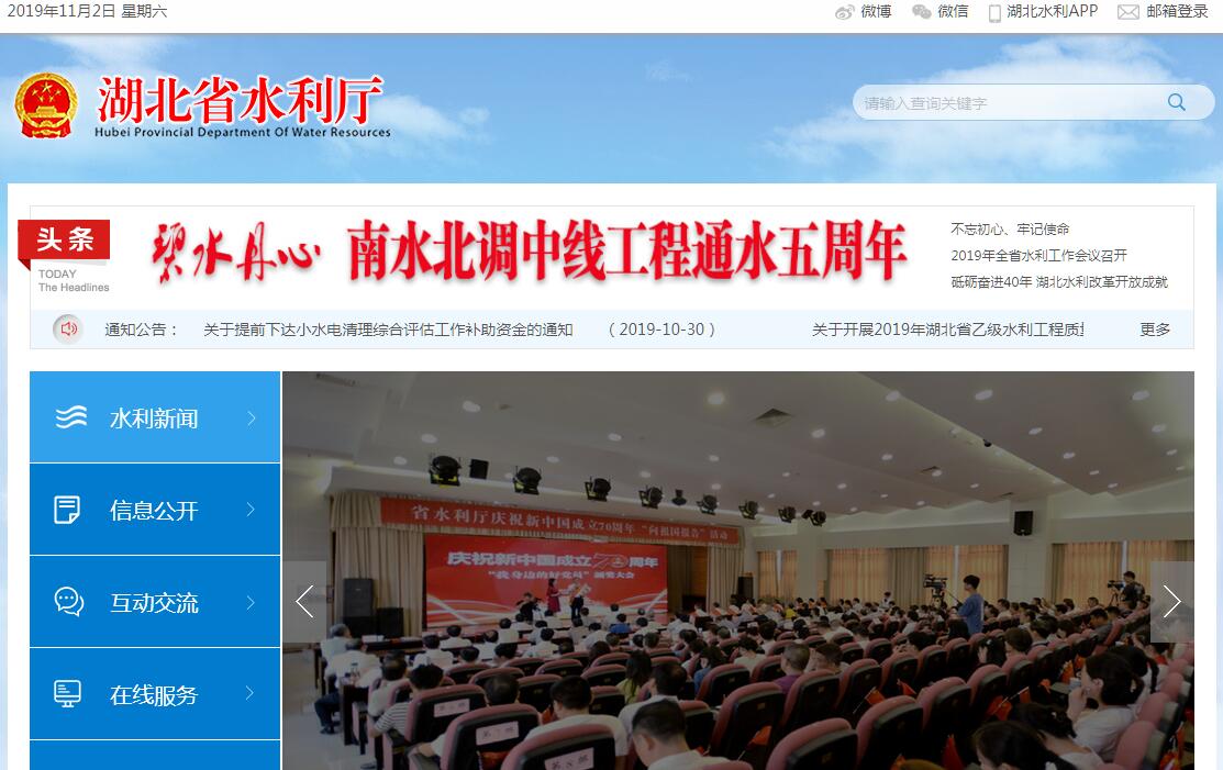 湖北省水利厅主要职责:(一)负责《中华人民共和国水法》、《中华人民共和国水土保持法》、《中华人民共和国防洪法》等法律法规的贯彻实施和监督检查,推进全省水利行业依法行政工作,拟订有关地方性法规、省政府规章草案。(二)负责保障全省水资源的合理开发利用,拟订全省水利发展及战略规划和政策,组织编制省确定的重要江河湖泊的流域综合规划、专业规划等重大水利规划,指导市、县区域和流域水利规划工作。(三)负责提出全省水利固定资产投资规模和方向,按照规定权限,审批、核准全省水利规划内和年度计划规模内固定资产投资项目,负责提出国家下达我省和省级财政性资金的水利投资安排意见并组织实施。(四)负责全省生活、生产经营和生态环境用水的统筹兼顾和保障。实施水资源的统一监督管理,拟订全省和跨市(州)水中长期供求规划、水量分配方案并监督实施。组织开展水资源和水能资源调查评价工作,负责全省重要流域、区域以及重大调水工程的水资源调度。组织实施取水许可、水资源有偿使用制度和水资源论证、防洪论证制度。指导水利行业供水和乡镇供水工作。指导、组织、协调全省农村饮水安全工程建设与管理工作。(五)负责全省水资源保护工作,组织编制水资源保护规划,组织拟订重要江河湖泊的水功能区划并监督实施,核定水域纳污能力,提出限制排污总量建议,指导饮用水水源保护工作,指导地下水开发利用和城市规划区地下水资源管理保护工作。(六)负责防治水旱灾害,承担省防汛抗旱指挥部的具体工作。组织、协调、监督、指挥全省防汛抗旱工作,对重要江河湖泊和跨市(州)水工程实施防汛抗旱调度和应急水量调度,编制湖北省防汛抗旱应急预案并组织实施。指导水利突发公共事件的应急管理工作。(七)负责全省节约用水工作。拟订节约用水政策,编制节约用水规划,制定有关标准,指导和推动节水型社会建设工作。(八)指导、组织全省水文工作,负责全省水文水资源监测、水文站网建设和管理,对江河湖库和地下水的水量、水质实施监测,发布水文水资源信息、情报预报和全省水资源公报。(九)指导、组织全省水利设施、水域及其岸线的管理与保护,主管全省河道、水库、湖泊、分洪区、蓄洪区、滞洪区水利工作,指导省内江河湖库的治理和开发,指导、组织水利工程建设与运行管理,组织实施具有控制性的或跨市(州)及跨流域的重要水利工程建设与运行管理,负责全省河道采砂的统一管理和监督检查工作。(十)负责全省水土保持工作,拟订水土保持规划并组织实施,组织实施水土流失的综合防治、监测预报并定期公告,负责有关重大开发建设项目水土保持方案的审批、监督实施及水土保持设施的验收工作,组织、指导有关重点水土保持建设项目的实施。(十一)指导全省农村水利工作,组织协调农田水利基本建设,指导、协调节水灌溉等工程建设与管理、农村水利社会化服务体系建设工作。(十二)负责全省水能资源开发利用管理工作,指导、组织和实施水能资源规划编制、设计审查、建设监管、水库防汛调度等方面的工作。指导、组织水电农村电气化和小水电代燃料工作。(十三)负责省内重大涉水违法事件的查处,协调跨市(州)水事纠纷,指导、组织全省水政监察、水行政执法和水利规费征收工作。依法负责水利行业安全生产工作,组织、指导水库、水电站大坝的安全监管,组织、指导水利建设市场的监督管理,组织实施水利工程建设的监督。(十四)开展全省水利科技、教育和对外合作工作。组织开展全省水利行业质量监督工作,组织拟订全省水利行业的有关技术标准、规程规范并监督实施。承担全省水利统计工作。组织开展全省水利行业对外交流工作。(十五)承办上级交办的其他事项。