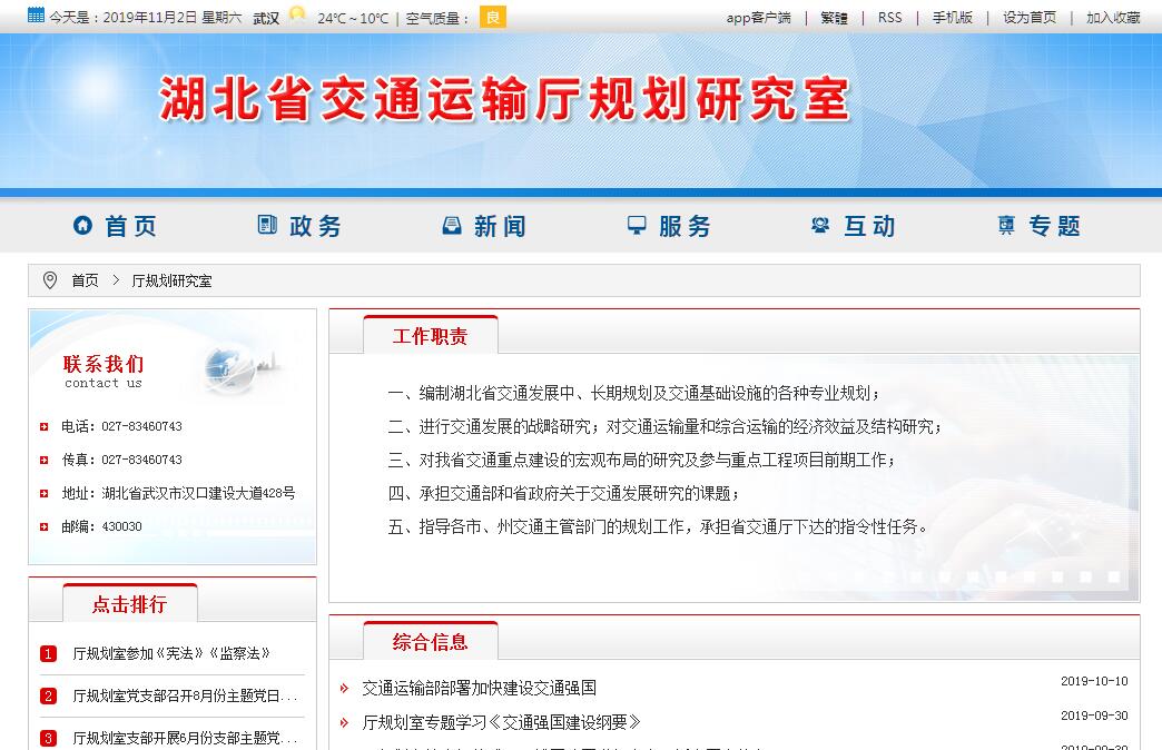 | 网站名称: | 湖北省交通运输厅规划研究室 | ||