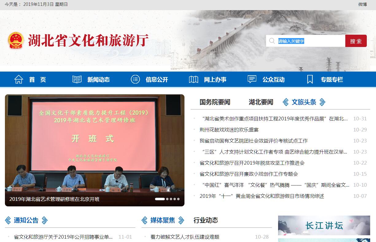 湖北省文化和旅游厅贯彻落实党中央关于文化和旅游工作的方针政策和决策部署, 落实省委工作要求,在履行职责过程中坚持和加强党对文化和旅游工作的集中统一领导。其主要职责是:(一)贯彻落实党的文化工作方针政策,研究拟订文化和旅游政策措施,起草文化和旅游地方性法规、省政府规章草案。(二)统筹全省文化事业和文化产业相关领域及旅游业发展,拟订发展规划并组织实施,推进文化和旅游融合发展,推进文化和旅游体制机制改革。(三)指导、管理全省性重大文化和旅游活动,指导规范全省重点文化和旅游设施建设,组织全省文化和旅游整体形象宣传推广,促进文化产业和旅游产业对外合作和推广,制定旅游市场开发战略并组织实施,指导、推进全域旅游。(四)管理全省文艺事业,指导全省艺术创作生产,扶持体现社会主义核心价值观、具有导向性代表性示范性的文艺作品,推动各门类艺术、各艺术品种发展。(五)负责全省公共文化事业发展,推进公共文化服务体系和旅游公共服务建设,深入实施文化和旅游惠民工程,统筹推进公共文化服务标准化、均等化。(六)指导、推进全省文化和旅游科技创新发展,推进文化和旅游行业信息化、标准化建设。(七)负责全省非物质文化遗产保护,拟订非物质文化遗产保护规划,推动非物质文化遗产的保护、传承、普及、弘扬和振兴。(八)指导、管理全省文物和博物馆事业,负责全省文物保护、抢救、发掘、研究和展示利用等工作。承担文物和博物馆有关审核、审批、监管及相关资质管理。指导、协调重大文物保护和考古项目的组织实施。管理指导博物馆间的交流与协作。负责全省文物科技保护和科研工作,推动完善文物和博物馆公共服务体系与信息化建设。(九)指导全省各级地方志工作。拟订全省地方志工作规划和编纂方案,组织、指导全省各级志书、地方史和综合年鉴的编纂,并实行备案管理。指导省级各类部门志、专业志及专业年鉴编纂。搜集、保存地方志文献和资料,组织整理旧志。收集、整理、开发利用地方志资源。(十)统筹规划全省文化产业相关门类和旅游产业,组织实施全省文化和旅游资源普查、挖掘、保护和利用工作,促进文化产业和旅游产业发展。(十一)指导全省文化和旅游市场发展,对文化和旅游市场经营进行行业监管,推进全省文化和旅游行业信用体系建设,依法规范文化和旅游市场。(十二)指导全省文化市场综合行政执法,组织查处全省性、跨区域文化、文物、出版、广播电视、电影、旅游等市场的违法行为,督查督办大案要案,维护市场秩序。(十三)指导、管理全省文化和旅游对外及对港澳台交流合作和宣传推广工作,组织大型文化和旅游对外及对港澳台交流活动,推动荆楚文化走出去。(十四)完成上级交办的其他任务。