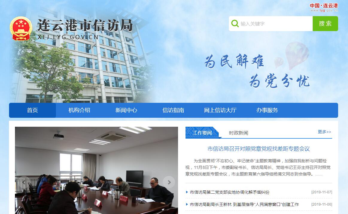 | 网站简介: 连云港市信访局主要工作职责:1、代表市委、市政府受理人民来信、来电、接待人民群众来访。2、承办中共中央、国务院、省委、省政府和市委、市政府领导同志交办、转办的信访案件。3、根据市委、市政府的领导意见和分级负责、归口办理的原则,向市直有关部门、区县机关及企事业单位交办、转办、督办信访案件。4、协调处理跨县区、跨部门的重要信访问题。5、调查处理或复查重要信访案件。6、为来信、来电、来访人员提供有关法律、法规、政策咨询、做好信访人员的思想疏导、矛盾化解工作。7、征集人民群众建议,向市委、市政府提供重要建议和报告重要信访信息;会同有关部门对带全局性或重要的信访问题开展调查研究,提供解决问题的方案或建议。8、检查、指导、督促各区、各县和市级机关各部门、各单位的信访工作。9、组织实施全市信访工作目标管理,提高信访工作质量,开展信访干部培训和信访宣传工作。 |