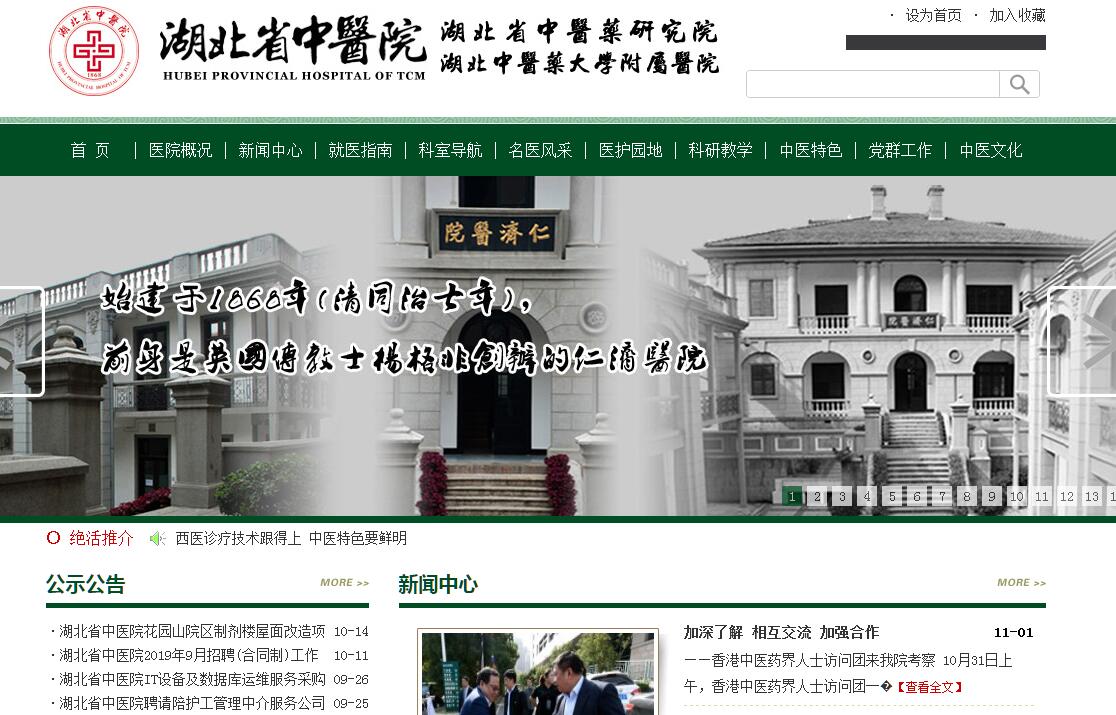 湖北省中医院暨湖北省中医药研究院、湖北中医药大学附属医院、国家中医临床研究基地,是全国唯一一所“四位一体”发展的省级三级甲等中医院,是国家中医药管理局首批全国示范中医院、国家临床药物试验机构、湖北省中医药数据中心。医院始建于1868年(清同治七年),前身是英国传教士杨格非博士创办的仁济医院,距今已有150年的历史。经过几代省中医人的辛苦耕耘,目前医院已发展成集医疗、教学、科研、保健、新药研发于一体的大型综合性省级中医院。2017年,医院被评为全国文明单位。湖北省中医药研究院,是根据中共中央[1978]56号文件精神确定建立的全国六所中医药科研基地之一,占地面积10万平方米。内设中西医结合研究所、中药研究所、骨伤科研究所、中医基础理论研究所、临床研究所5个研究所,下设15个研究室。1991年5月,原国家主席李先念同志为研究院题写院名。同年9月,李先念同志夫人林佳媚女士亲临研究院,为院名揭牌。1994年,被确定为“卫生部中药临床药理基地”。2001年,研究院与湖北中医学院附属医院合并组建成湖北省中医院。2017年,研究院成功纳入国家中医药传承创新工程省级中医药科研机构项目。湖北中医药大学附属医院,1961年,原湖北省卫生厅批准湖北省中医院前身—湖北医院为湖北省中医学院附属医院。50年多年来,医院已发展成为师资力量雄厚的大型教学医院。每年完成湖北中医药大学课堂教学任务2万余学时,接收实习生、进修生、留学生、硕士生、博士生500余人次。国家中医临床研究基地,2008年,医院确定为全国十六家国家中医临床研究基地建设单位之一,重点进行肝病研究。基地项目新建总建筑面积60040㎡的综合大楼,总投资2.83亿元。2015年4月,基地综合大楼正式投入使用,2016年12月,基地建设顺利通过国家中医药管理局综合验收。目前,医院“一院五址”,即花园山院区、光谷院区、凤凰门诊、省直机关分院及建设中的武东院区。建筑面积29万平方米,开放床位2000余张。医院专家荟萃。现有在职职工2438人,副高以上职称专业技术人员440人,博士生导师29人、硕士生导师159人。设有12个博士点、23个硕士点。拥有210名从事科研工作的全额事业编制。拥有全国名中医1名,国家级名老中医27名,湖北中医大师9名,湖北中医名师14名,全国优秀中医临床研修人才27名,首届湖北省中青年知名中医11名,湖北医学领军人才1名。医院专科齐全。开设临床及医技科室37个,拥有国家卫生计生委重点专科5个、国家中医药管理局重点专科9个、国家中医药管理局重点学科6个、省级重点专科13个、省级重点学科6个。我院现为区域中医诊疗中心(肾病)建设单位和区域中医诊疗中心(肝病)培育单位。医院中医特色突出。始终致力于继承和发扬中医药的精髓,在全国率先开展“治未病”、“体质辨识”、“冬病夏治”、“膏方节”等中医特色服务,拥有国家级名老中医药专家传承工作室10个、国家级中医学术流派传承工作室1个、国家中医药重点研究室和国家中医药管理局科研三级实验室各一个、二级实验室14个。中药制剂品种98个。医院科研实力稳步提升。先后主持或参加了国家“六五”至“十五”重大科技攻关项目、“973”及国家自然科学基金项目等部省级科研课题400余项,获国际、国内先进成果60余项。国家药物临床试验机构GCP专业19个,国家、省级学会主任委员30余人,副主委60余人。医院致力协同创新,合作共赢。先后与美国、英国、加拿大、德国、捷克、新加坡、台湾等25个国家和地区建立合作关系。同时,以国家中医药研究基地为引领,面向需求、推倒围墙、整合优势资源,聚焦湖北传统优势中医药研发,广泛借脑引智,聘请国内外十余位知名专家,寻求学术技术支持。与湖北中医药大学、省内外知名药企、知名大学研究室所、国内高水平研发团队进行实质性协作与合作。与我省25家三级中医院组建湖北省中医联盟,与12家基层中医院组建湖北省中医院集团,在专学科建设、人才培养、科研协作、中药制剂研发推广等方面开展广泛、深入的合作,全力打造我省集政产学研医于一体、贯通一、二、三产业的协同创新平台。2018年,医院将继续秉承“传承中医文化,服务大众健康”的服务理念,顺势而为抓机遇,乘势而上促发展,努力向外拓展空间,继续对内挖潜增效,进一步补短板、强特色、立标杆,全面提升以临床疗效为中心的中医药服务能力,努力建设受病人信赖、令社会满意、让员工幸福的现代化创新型中医院,引领湖北省中医药事业发展,切实担当国家中医临床研究基地的示范作用,为早日实现“进入全国中医院第一方阵”奋斗目标,不忘初心,继续前进!