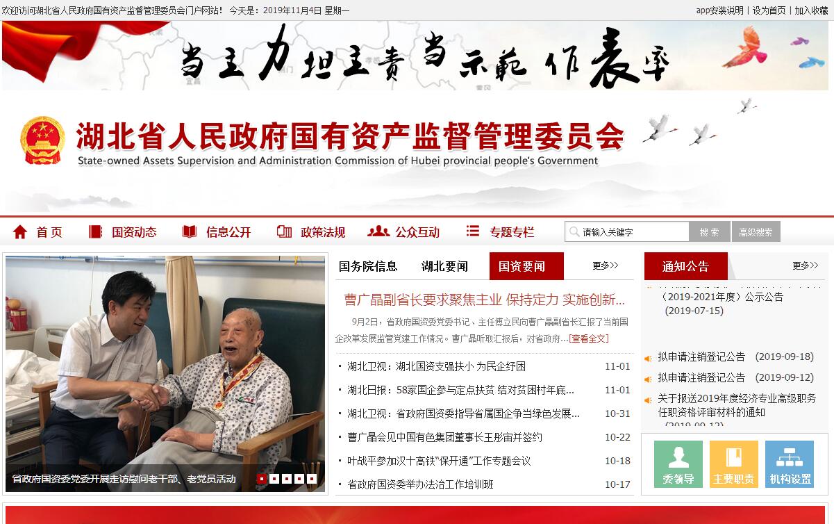 湖北省人民政府国有资产监督管理委员会(简称省国资委),为省政府直属正厅级特设机构。省政府授权省国资委代表省政府履行出资人职责。根据省委决定,省国资委成立党委,履行省委规定的职责。省国资委的监管范围是省级国有资产。其主要职责是:(一)根据省政府授权,依照《中华人民共和国公司法》和《企业国有资产监督管理暂行条例》等法律和行政法规对省属企业的国有资产履行出资人职责;通过统计、稽核对所监管国有资产的保值增值情况进行监管;建立和完善国有资产保值增值指标体系,拟订考核标准;维护国有资产出资人的权益。(二)指导推进全省国有企业改革和重组,推进全省国有企业的现代企业制度建设,完善公司治理结构。(三)推动全省国有经济结构和布局的战略性调整,研究发展大型企业和企业集团的政策、措施,指导国有企业实施战略性改组。(四)代表省政府向部分大型企业派出监事会;负责监事会的日常管理工作。(五)通过法定程序对企业负责人进行任免、考核并根据其经营业绩进行奖惩;建立符合社会主义市场经济体制和现代企业制度要求的选人、用人机制,完善经营者激励和约束制度。协助有关部门做好所监管企业的专业技术职称评审工作。(六)拟订和执行全省国有资本金基础管理的有关政策、制度和办法;调查研究国有资本金基础管理的重大问题以及国有资本金的分布状况;研究制定国有股权管理办法;研究提出国有资本金预决算编制和执行方案;拟订国有资本金保值增值的考核指标体系;组织实施国有资本金权属的界定、登记、划转、转让、纠纷调处等;负责监缴所监管企业国有资本金收益。(七)负责国有资本金的统计分析,提供有关信息,组织建设国有资本金统计信息网络;贯彻国有企业清产核资的方针政策,拟订相关制度和办法;组织实施所监管企业清产核资工作。(八)贯彻落实国有资产管理的法律、行政法规,制定有关规章制度;指导企业法律顾问工作;依法对省以下企业国有资产管理进行指导和监督。(九)负责党的关系归口国资委党委管理的中央在鄂企业和所监管企业党的建设、社会主义精神文明建设和宣传、思想政治工作。(十)按照省委有关决定,管理企业领导班子建设。(十一)协助省纪委抓好党的关系归口国资委党委管理的中央在鄂企业以及所监管企业的纪检和监察工作。(十二)承办上级交办的其他事项。